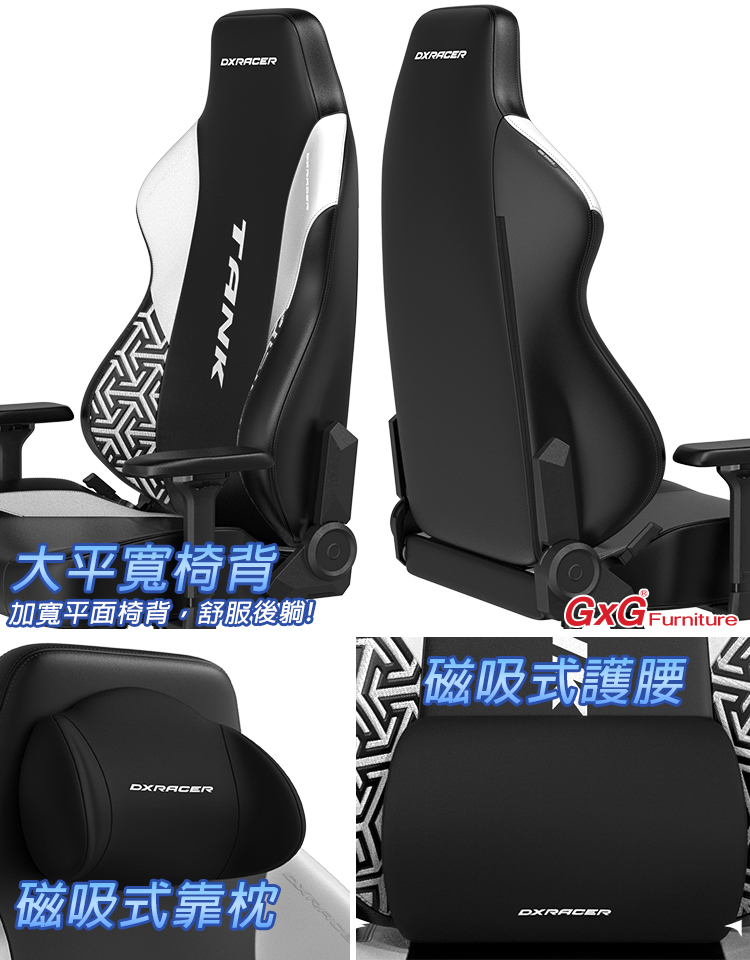 DXRACER TANK泰坦級 電競賽車椅 (黑白色/合成皮面)