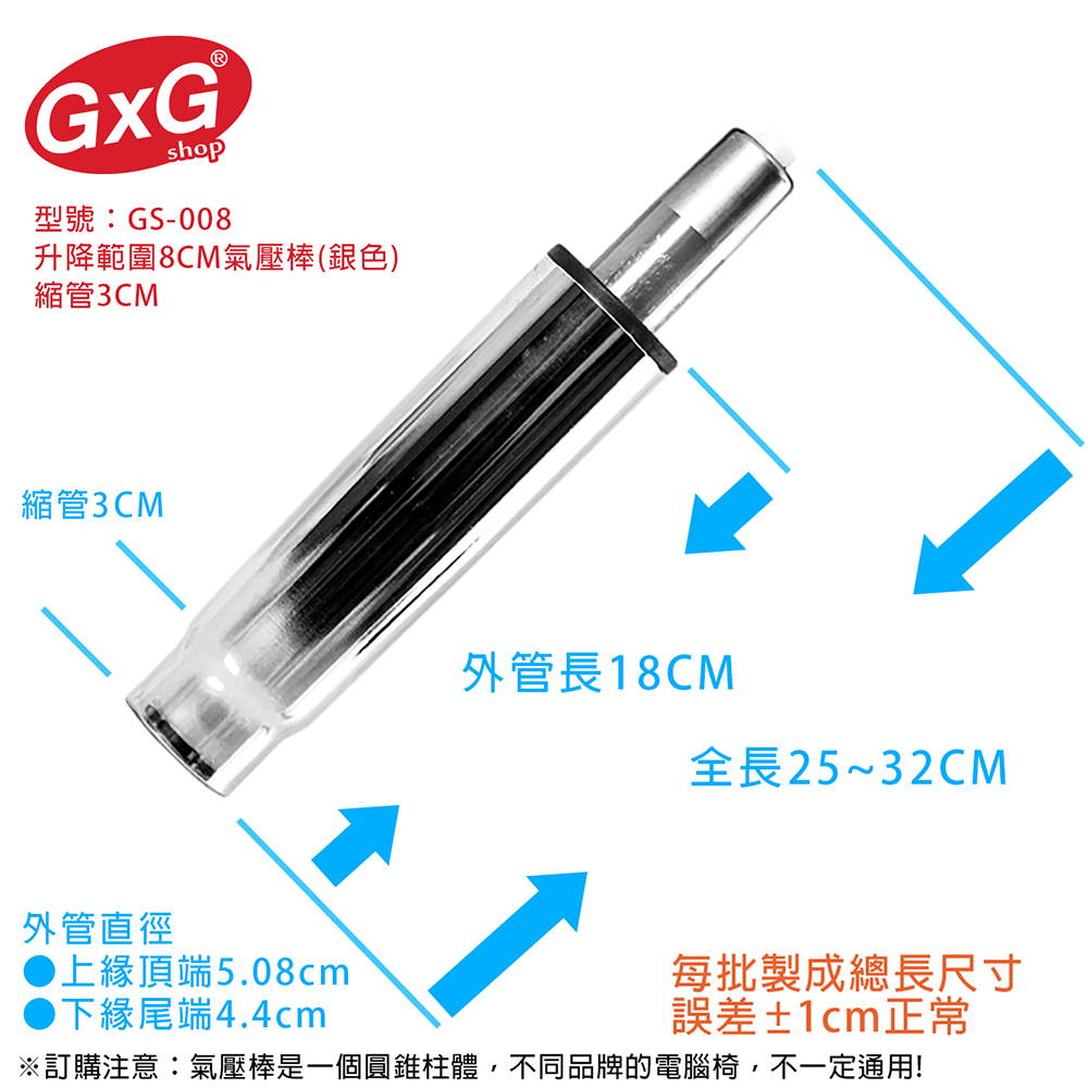 8.座面高度決定於氣壓棒使用長短,請選擇適當高度,若需求較高高度,建議加長氣壓棒尺寸,避免高度不夠,將氣壓棒升到最高,容易造成氣壓棒損壞。