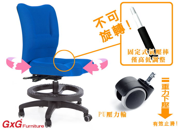 本訂購頁規格:無扶手、不旋轉氣壓棒(坐墊不轉動)、PU壓力輪
