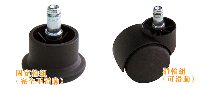 本款有兩種輪組可選,訂購前請注意,左圖為固定輪(不會滑動,輪子為平面),上圖為一般PP尼龍輪(可推動,若家中為木質、大理石地板,建議加購升級PU輪,避免地板刮傷)。