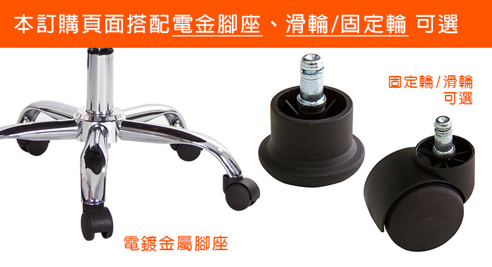 本款有兩種輪組可選,訂購前請注意,左圖為固定輪(不會滑動,輪子為平面),右圖為一般PP尼龍輪(可推動,若家中為木質、大理石地板,建議加購升級PU輪,避免地板刮傷)。
