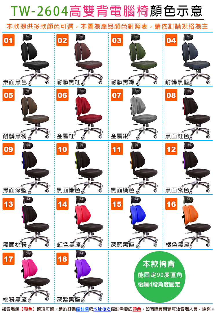椅背可固定90度或彈力後仰式,多款造型、多功能扶手可選,