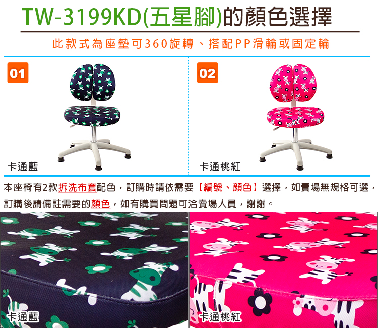 TW-3199KD 兒童雙背椅《五星腳》 卡通桃紅色 示意圖