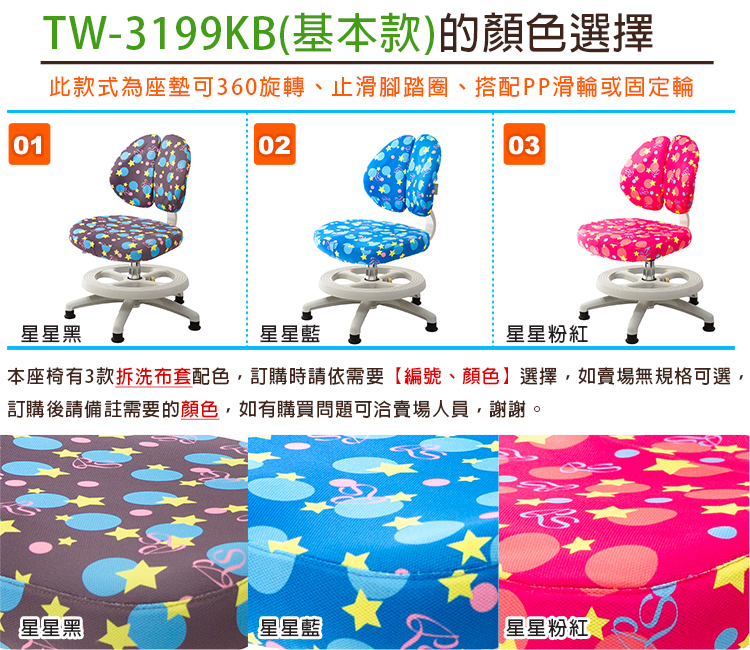 TW-3199SB 兒童雙背椅《基本款》 星星黑色 示意圖