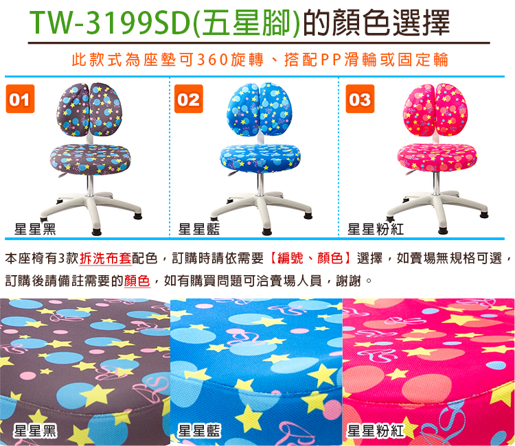 TW-3199SD 兒童雙背椅《五星腳》 星星黑色 示意圖