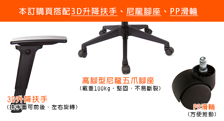 本訂購頁規格:3D塑鋼升降扶手、尼龍高腳座、PP滑輪