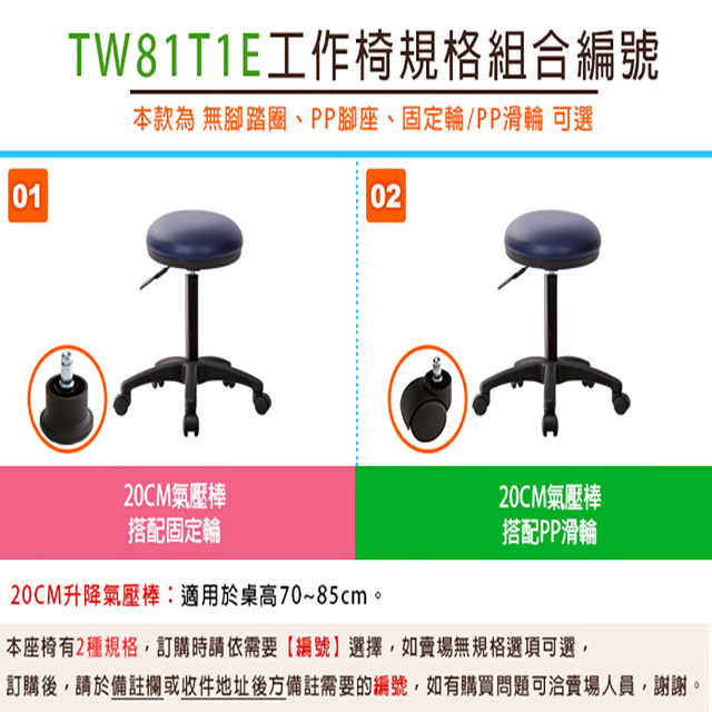 ※本款TW--81T1 圓凳工作椅,提供多種款式可選,可以依據需求購買