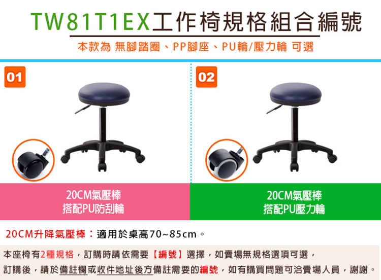 ※本款TW--81T1 圓凳工作椅,提供多種款式可選,可以依據需求購買