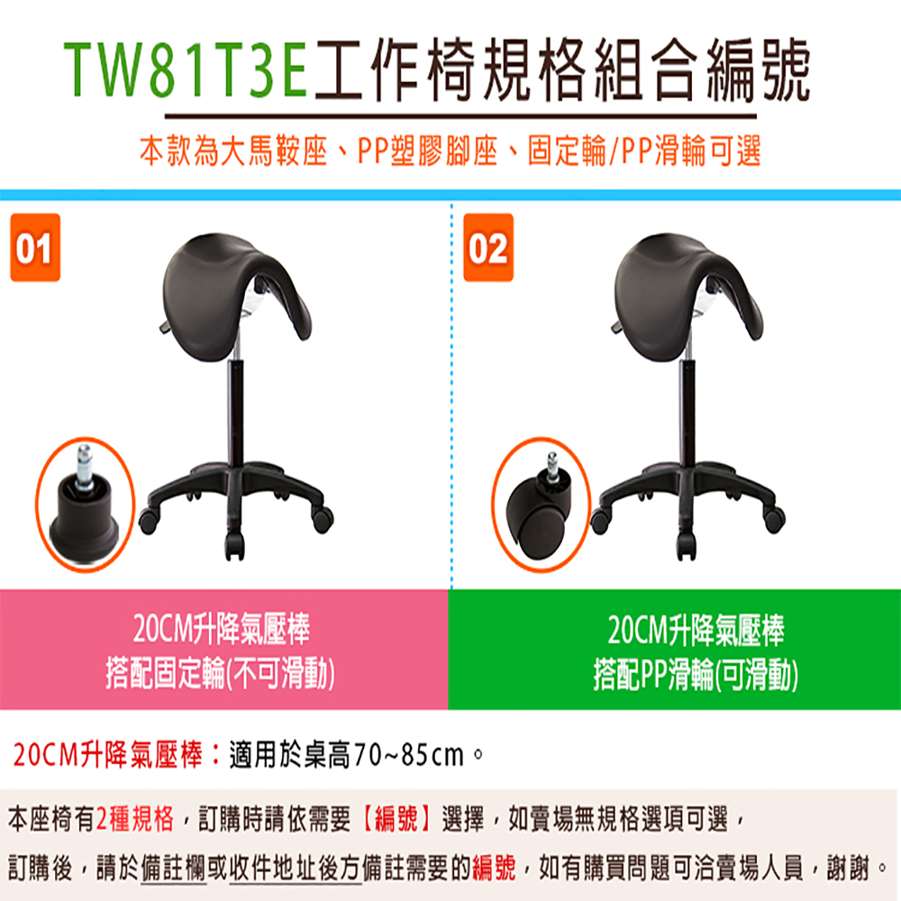 ※本款TW-81T3 馬鞍工作椅,提供多款式可選,可以依據需求購買