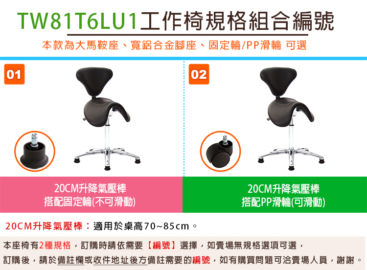※本款TW-81T6 馬鞍工作椅,提供多款式可選,可以依據需求購買