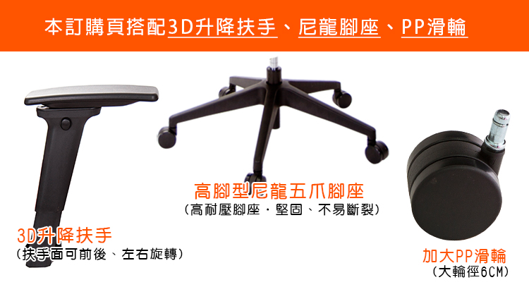 本訂購頁規格:3D升降扶手、尼龍高腳座、PP滑輪