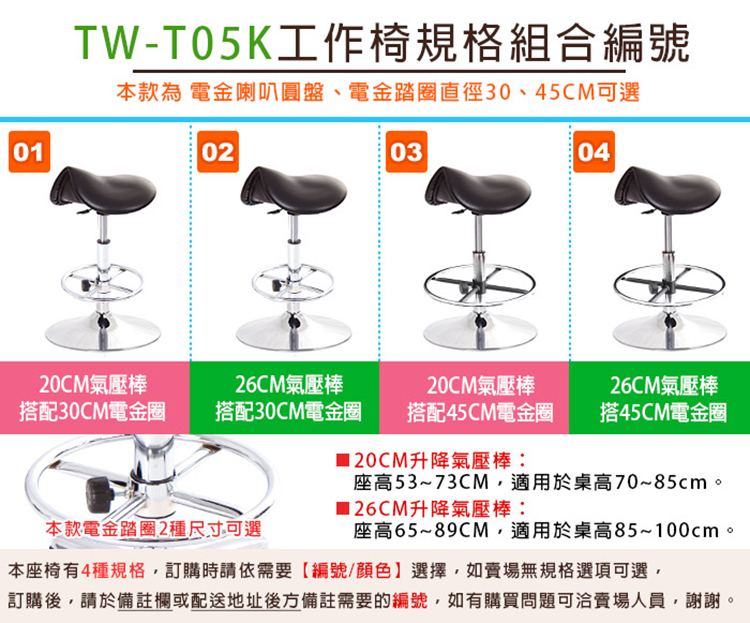 GXG 馬鞍款 工作椅 (金屬圓盤+踏圈款) 型號TW-T05K