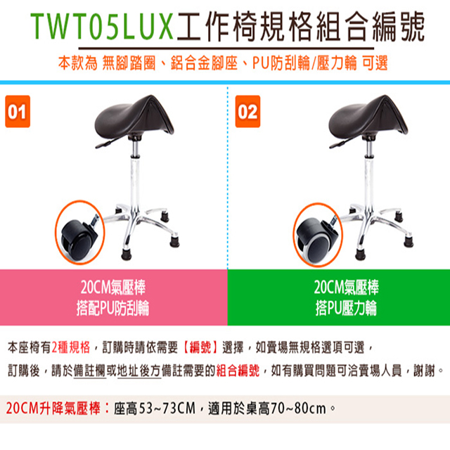GXG 馬鞍款 工作椅 (鋁合金款+防刮輪) 型號TW-T05LUX