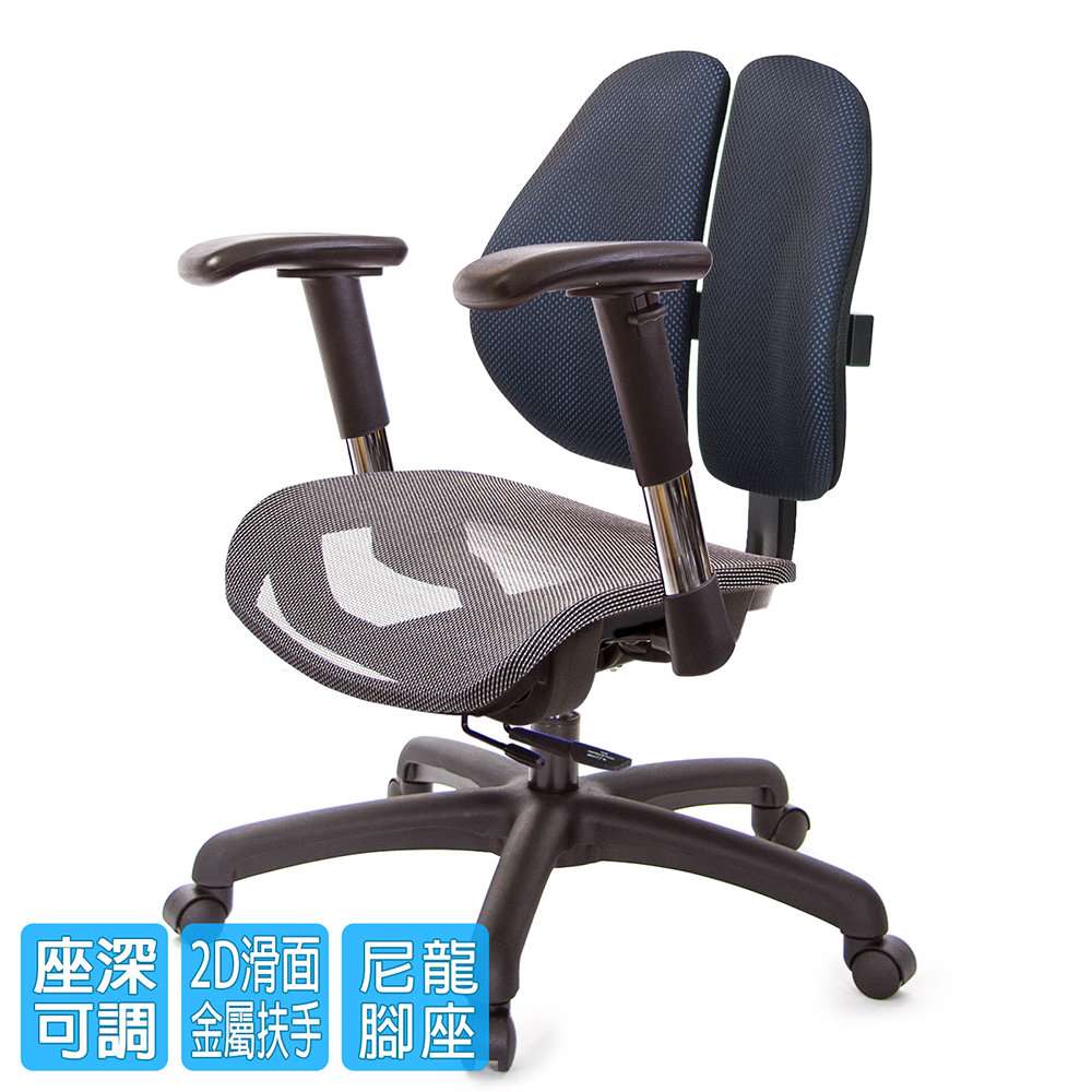 GXG 低雙背網座 工學椅(鋁腳/2D滑面金屬扶手) 型號2805LU6