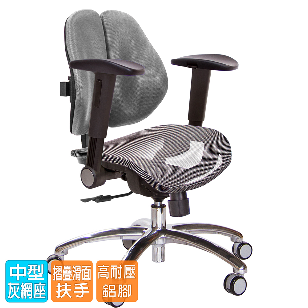 GXG 低雙背網座 電腦椅(鋁腳/摺疊升降扶手) 型號2803LU1