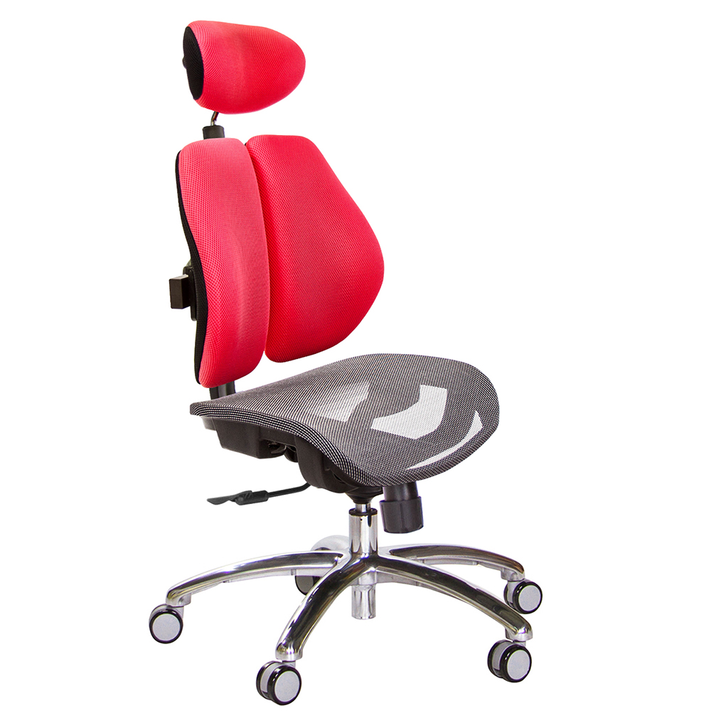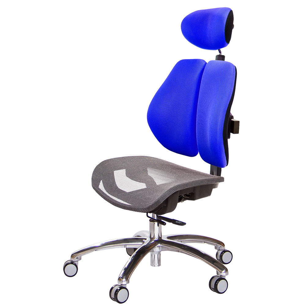 GXG 雙軸枕 雙背工學椅(鋁腳/無扶手) 中灰網座 型號2706LUANH