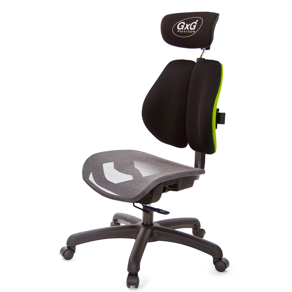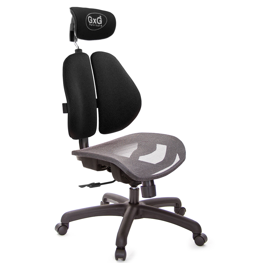 GXG 雙軸枕 雙背工學椅(無扶手) 中灰網座 型號2706EANH