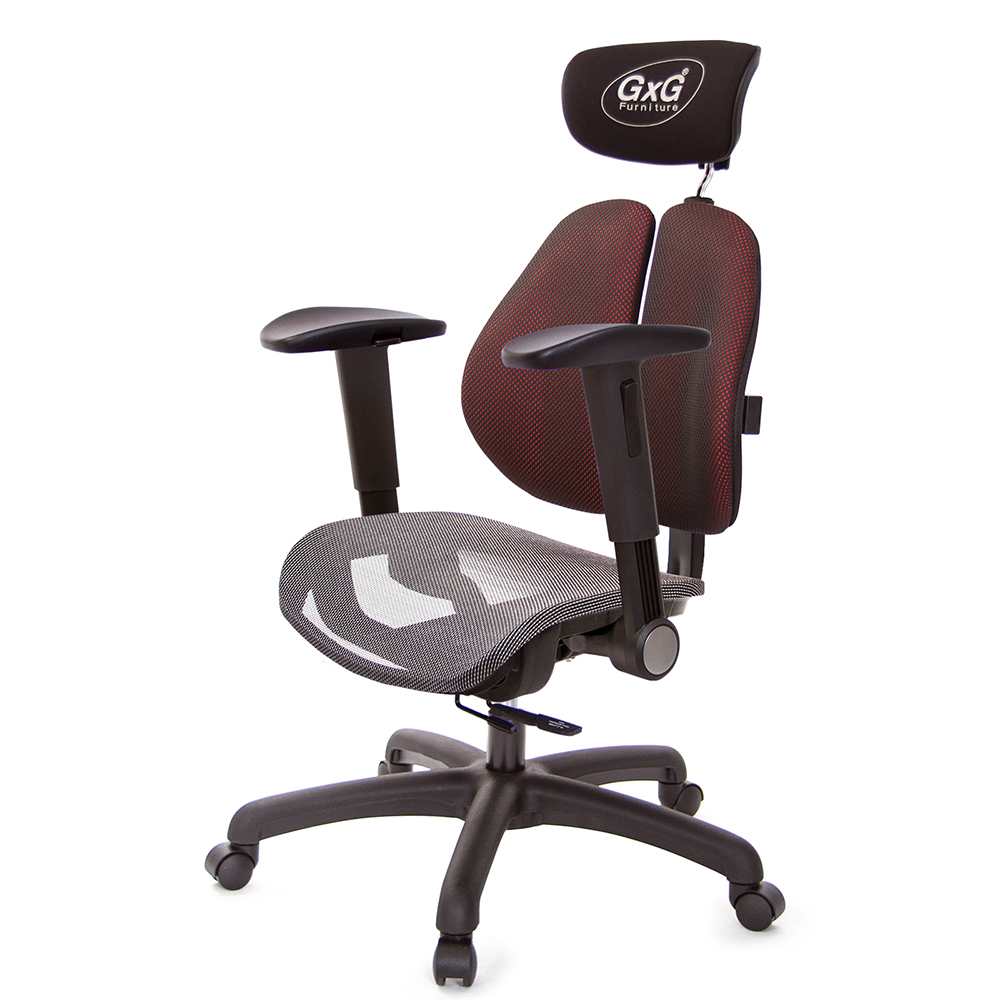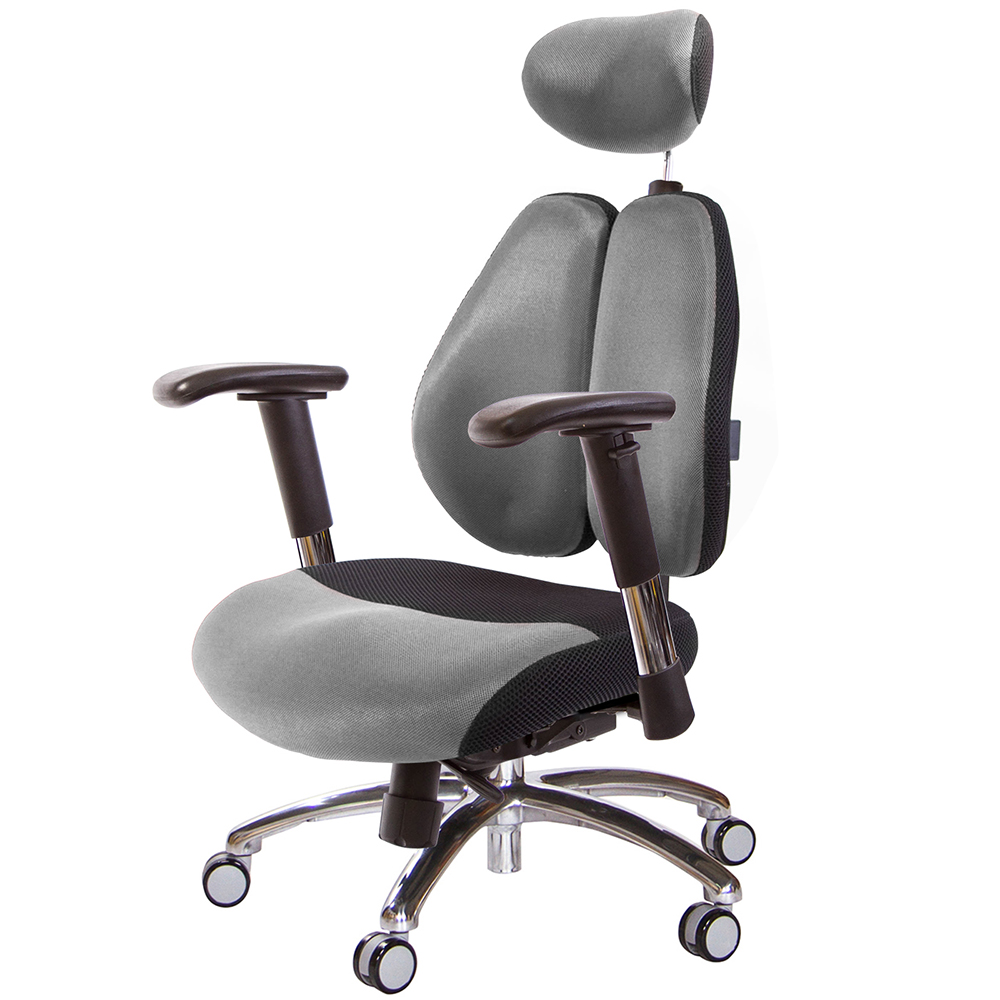 GXG 雙軸枕 雙背工學椅(摺疊滑面扶手) 中灰網座 型號2706EA1J