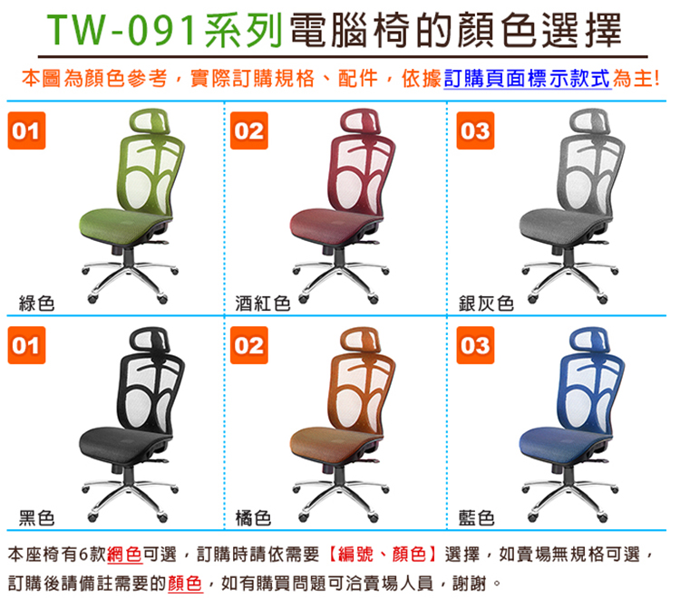 ※小提醒:本款 TW-091電腦椅,適合身高168-180CM的使用者;身高160CM以下使用者,有恐頭枕過高狀況,建議選購無頭枕款式,若有問題可先洽詢賣場客服 。