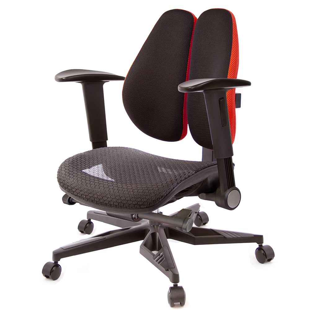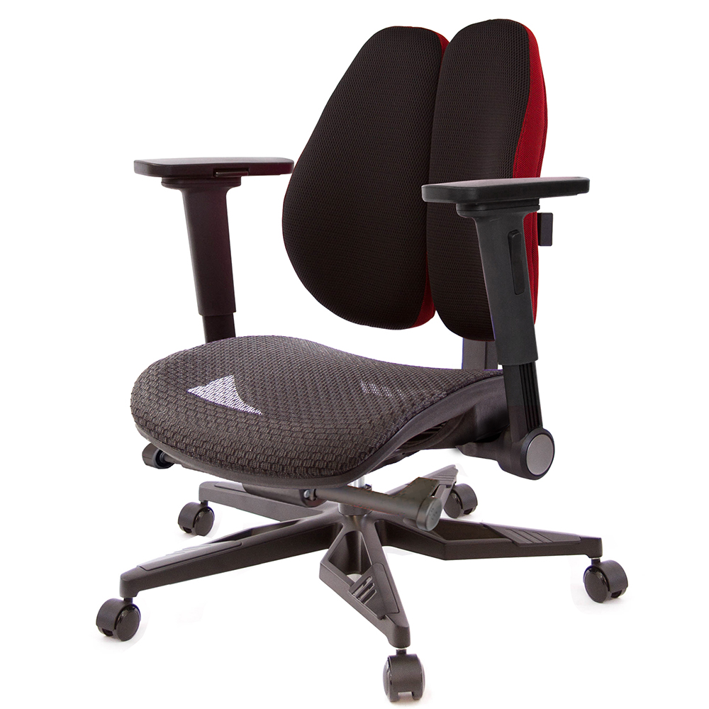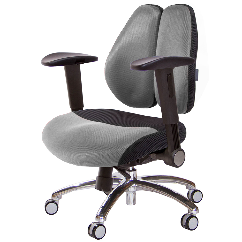 TW-2805低背款雙背椅,本款使用中型灰網面座墊,適合身高160~185CM使用者,椅背採用人體工學設計,造型看似烏魚子、或是像兩個人體肺的型狀,這樣的設計,是讓我們在乘坐後靠時,能更貼合我們背部,緩和脊椎的重力,降低尾椎壓力,給長時間工作者一張,聰明、會改善坐姿習慣的智慧椅。