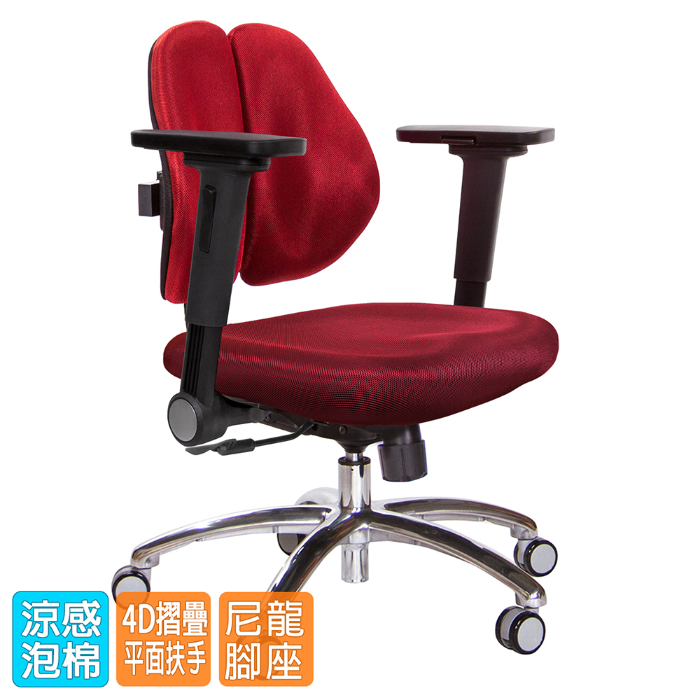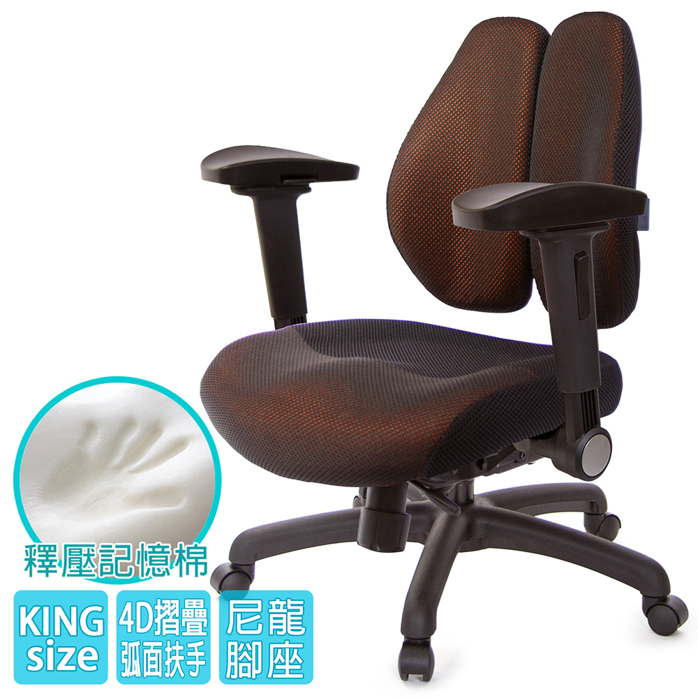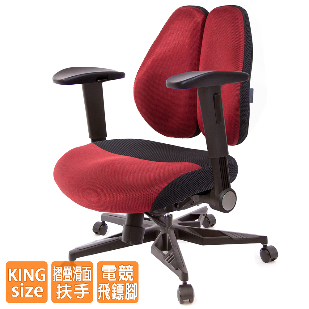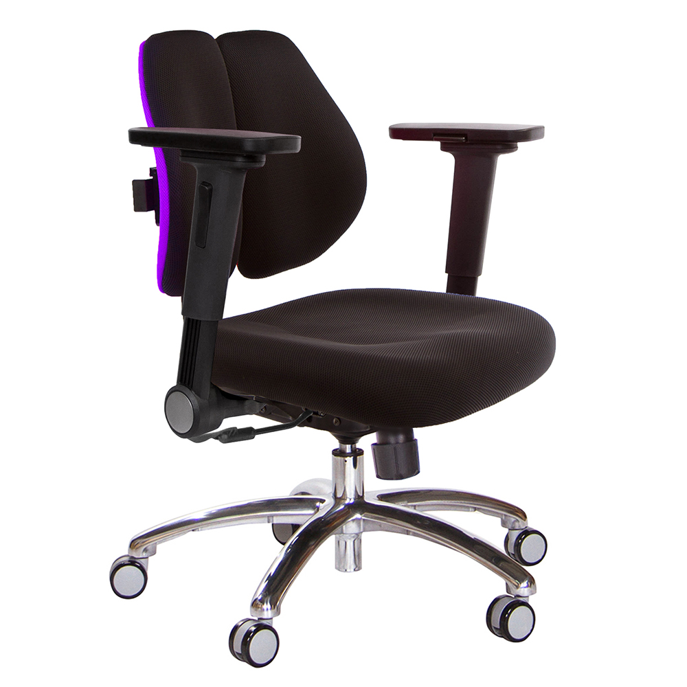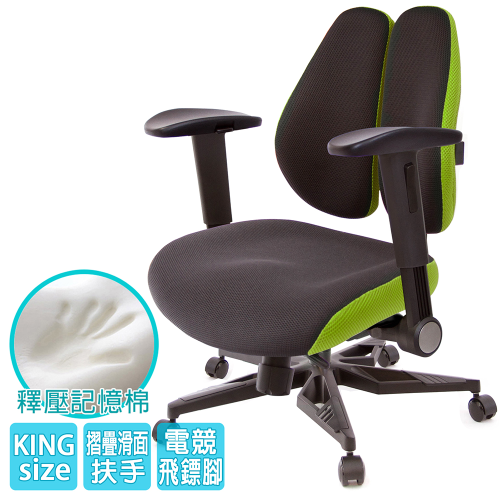 人體工學雙背設計,改善長時間座在椅子上,覺得腰部貼合度不足,有懸空或不夠沉穩的感覺,改良式的雙背背墊,除了完整包覆性外,更提供了『左右彈性』、『上下貼合』、『彈力緩衝』等特性,並有多國國際結構專利認證(台灣、德國、日本、美國、中國等),原廠專利、技術100% Made in Taiwan台灣製造。