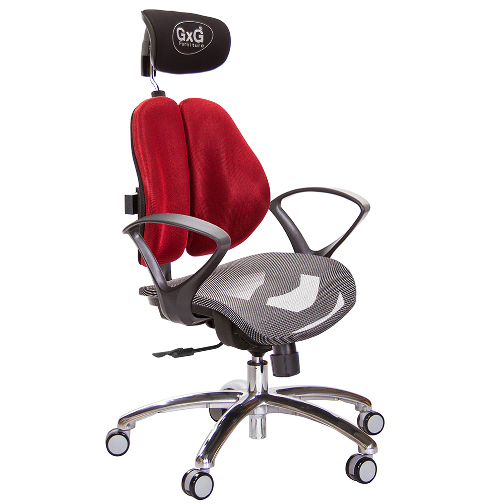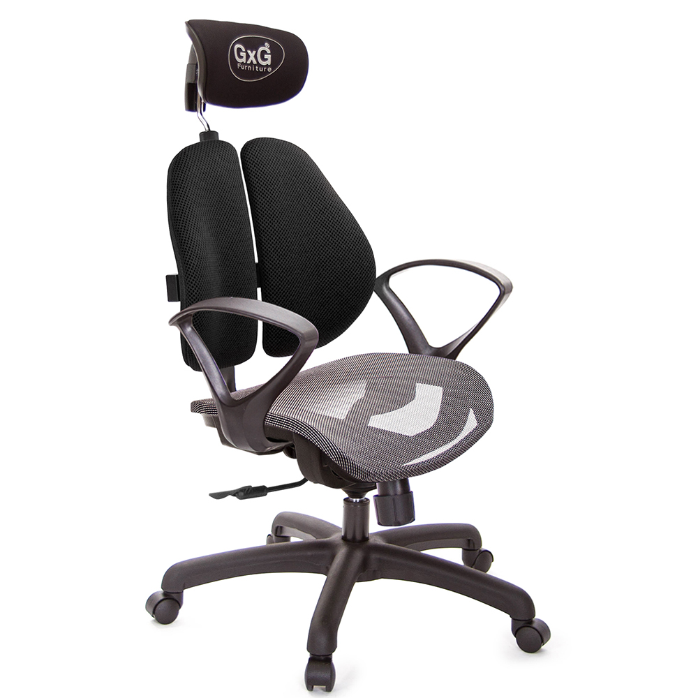 一般的電腦椅,實際上『椅背』大都不能支撐人體腰椎,緣自於人體本身的構造,人體的肩胛骨兩旁延伸至肩膀,其雙肩的壓力,會集中到腰椎中心處形成一個『倒三角的點』,如同一個箭頭向下將壓力壓迫到腰椎,無法讓脊椎肌肉正常釋放重力。 GXG Furniture開發出新式『智慧雙背椅』,提倡健康座、舒適生活,當您坐在一般椅子上,腰椎基本所承受的壓力,是人體自然站立時的140%,而使用『雙背智慧椅』,如同多了一雙手,完整托住您的背部,明顯比一般椅子減輕百分之五十的腰椎壓力,讓腰椎壓力降至75%,改善您長久以來的困擾怎麼坐,都痠痛的問題,能讓您舒適度明顯提升