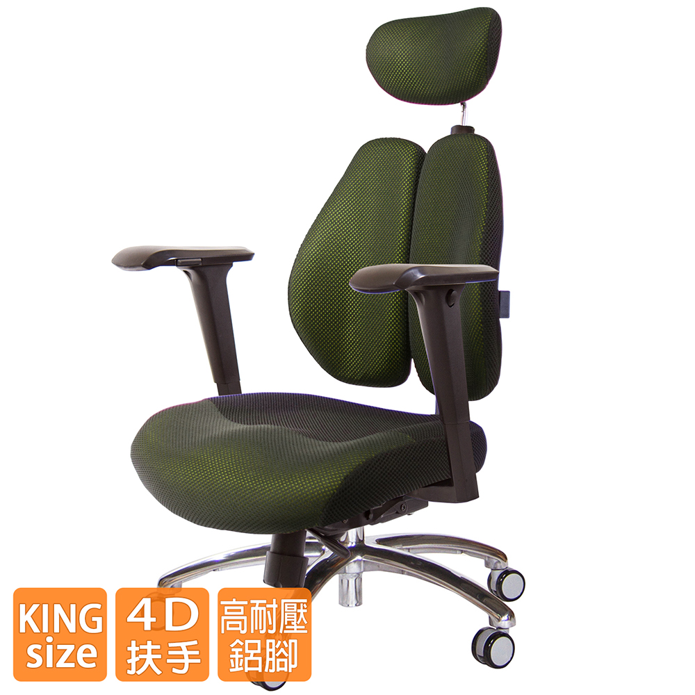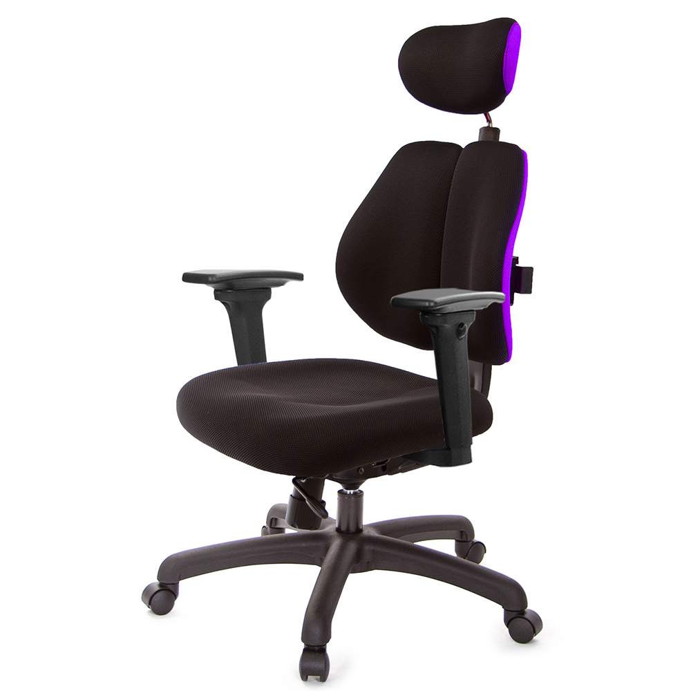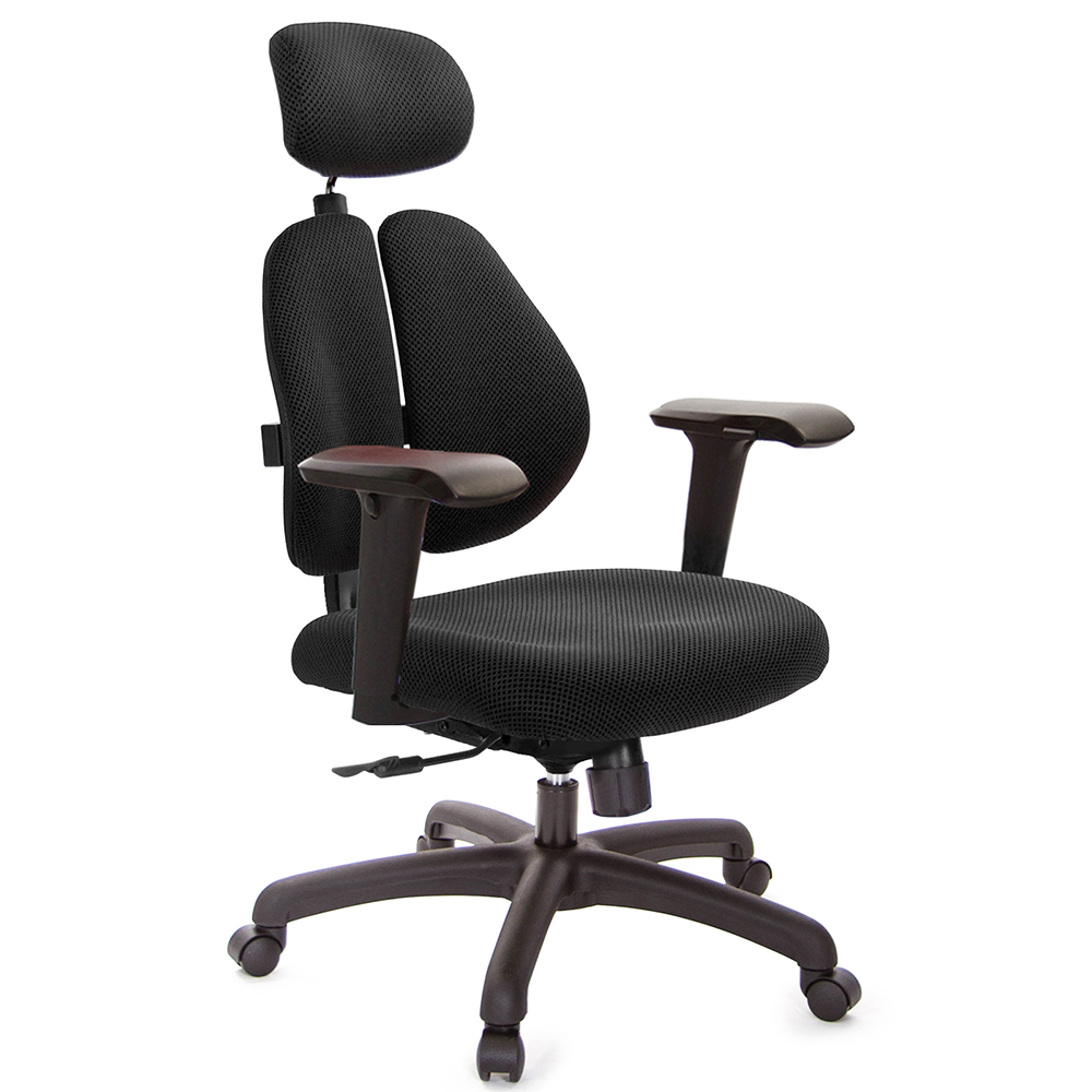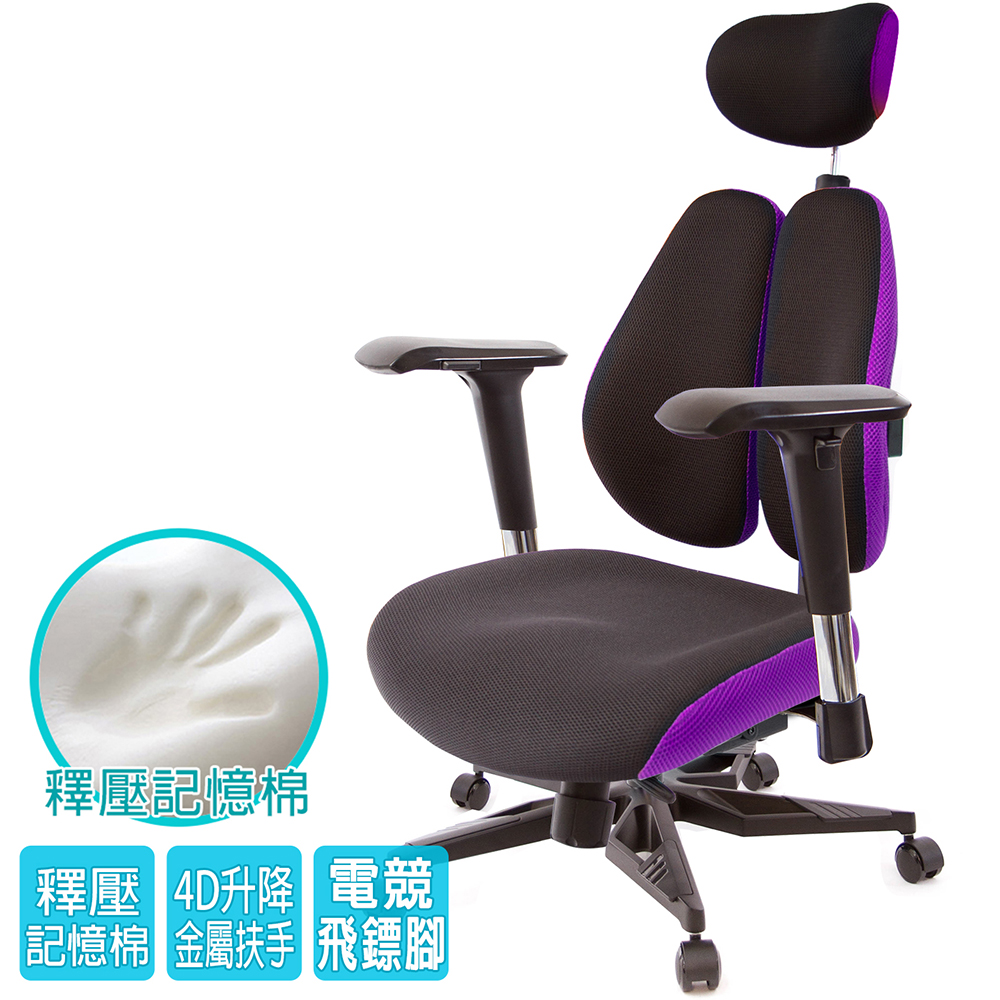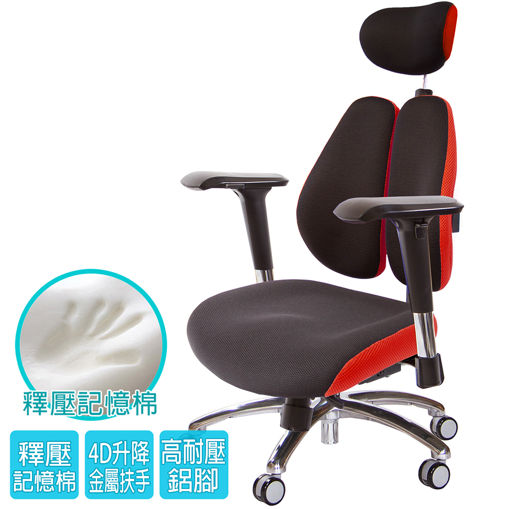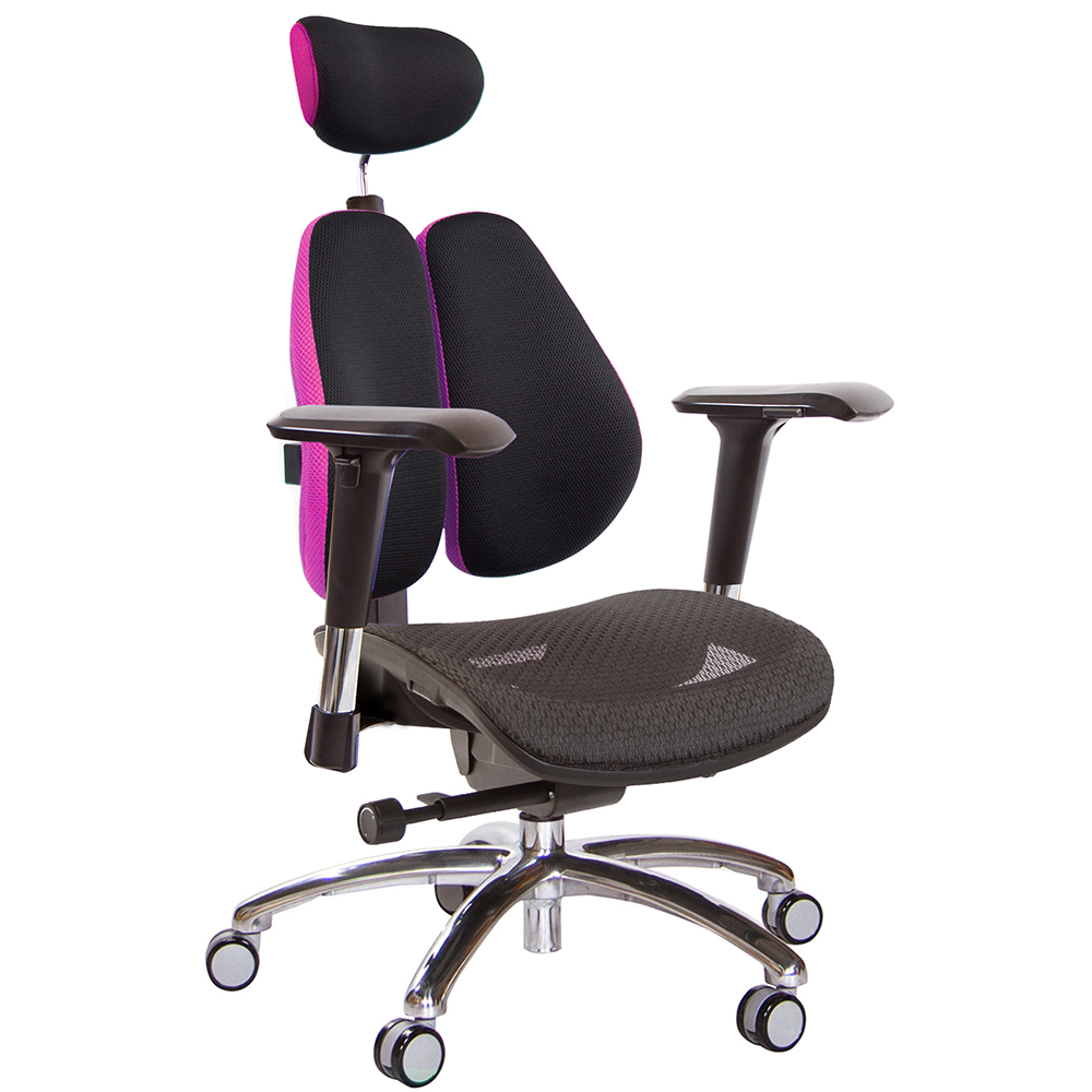 人體工學雙背設計,改善長時間座在椅子上,覺得腰部貼合度不足,有懸空或不夠沉穩的感覺,改良式的雙背背墊,除了完整包覆性外,更提供了『左右彈性』、『上下貼合』、『彈力緩衝』等特性,並有多國國際結構專利認證(台灣、德國、日本、美國、中國等),原廠專利、技術100% Made in Taiwan台灣製造。