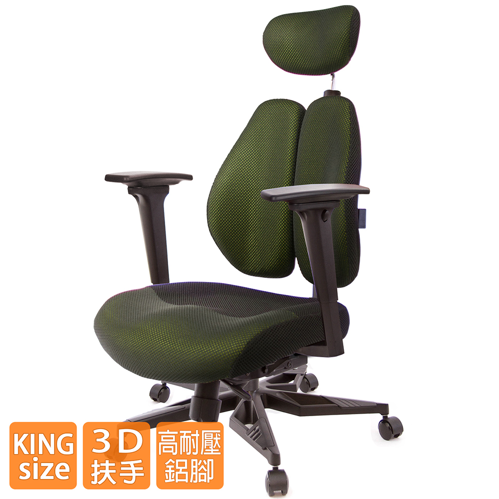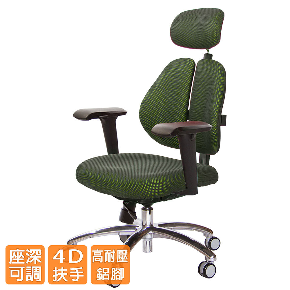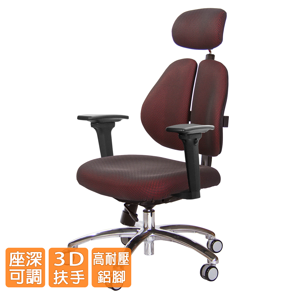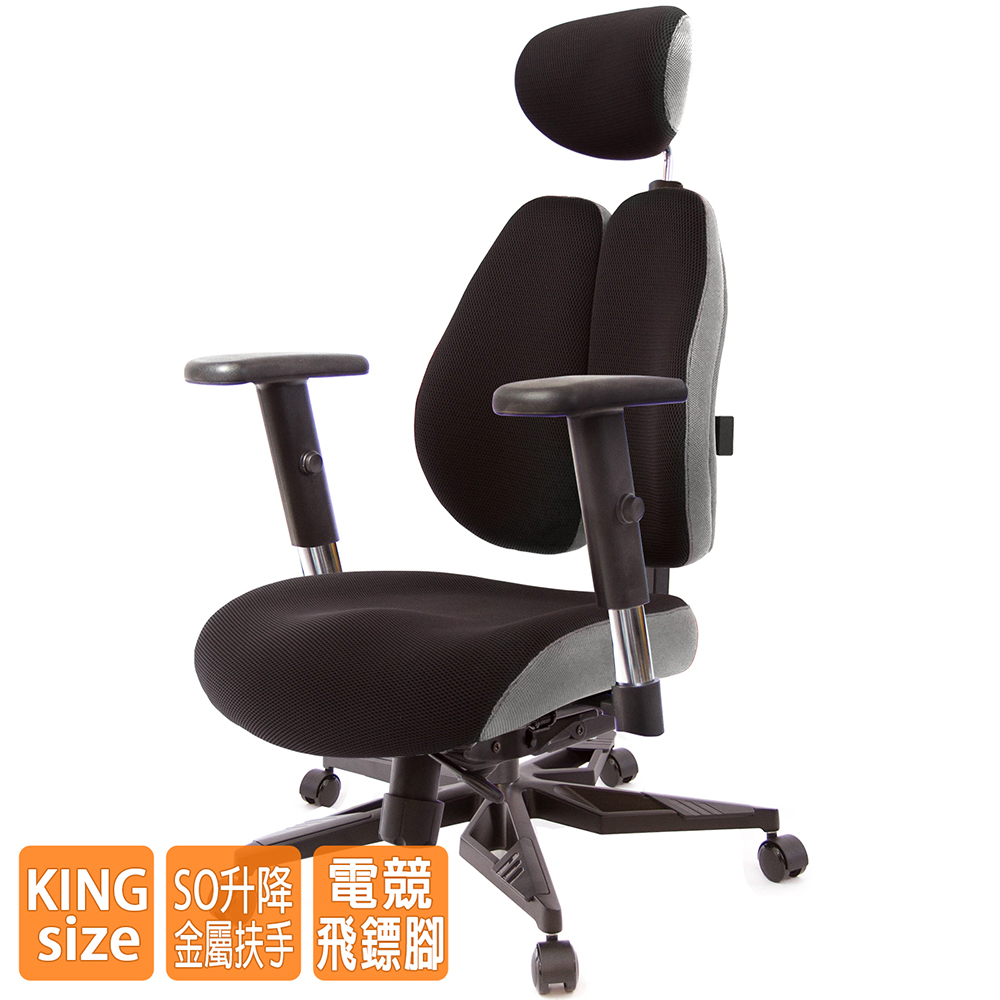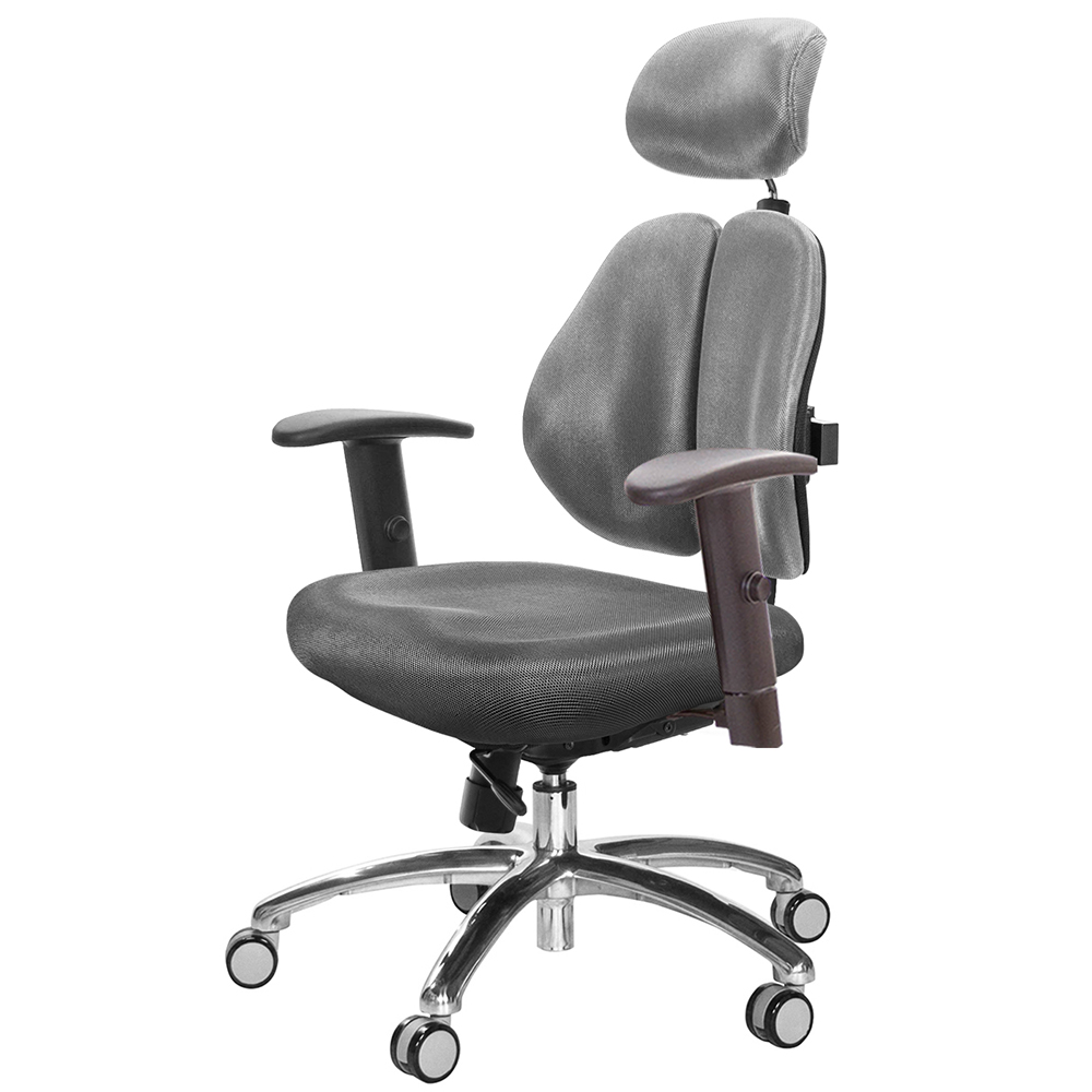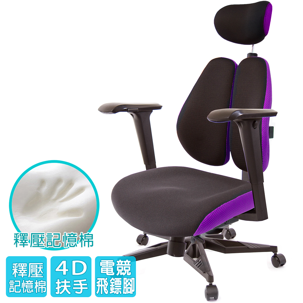 人體工學雙背設計,改善長時間座在椅子上,覺得腰部貼合度不足,有懸空或不夠沉穩的感覺,改良式的雙背背墊,除了完整包覆性外,更提供了『左右彈性』、『上下貼合』、『彈力緩衝』等特性,並有多國國際結構專利認證(台灣、德國、日本、美國、中國等),原廠專利、技術100% Made in Taiwan台灣製造。