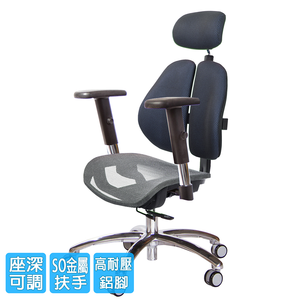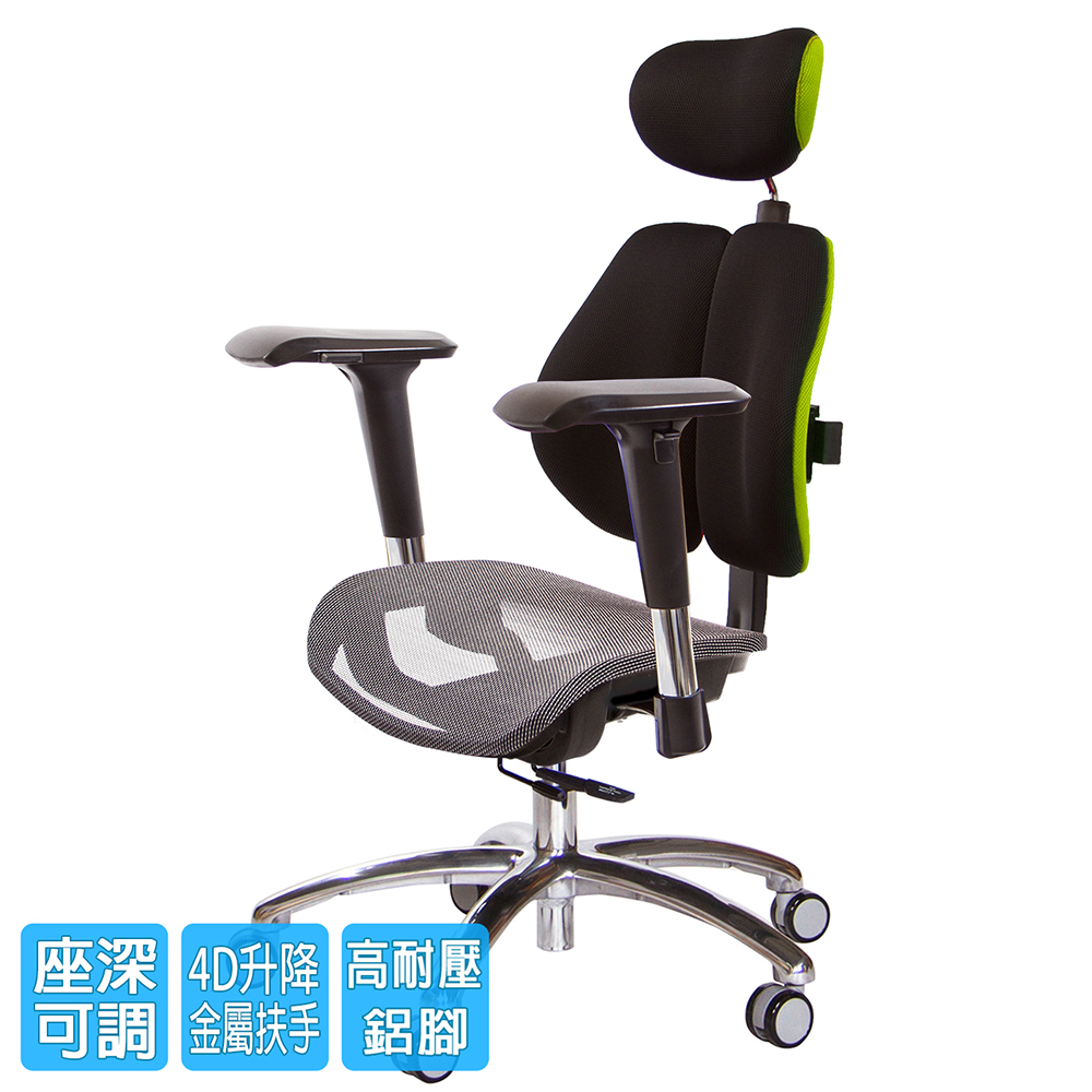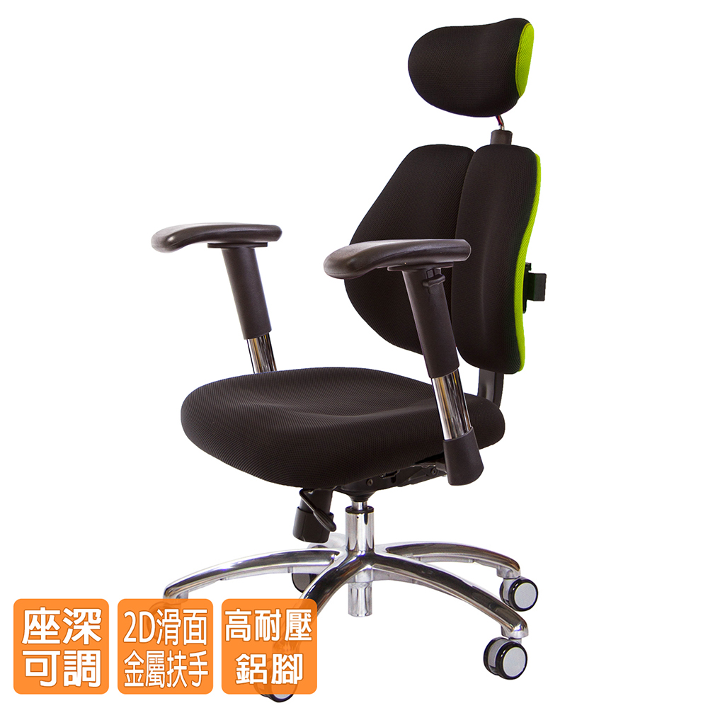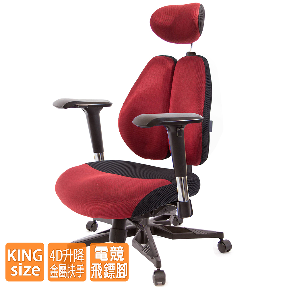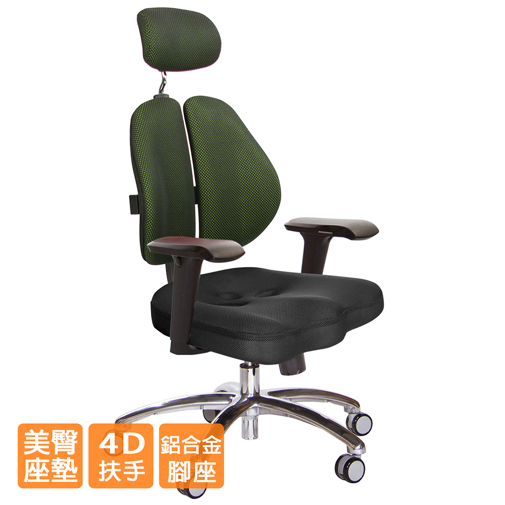 人體工學雙背設計,改善長時間座在椅子上,覺得腰部貼合度不足,有懸空或不夠沉穩的感覺,改良式的雙背背墊,除了完整包覆性外,更提供了『左右彈性』、『上下貼合』、『彈力緩衝』等特性,並有多國國際結構專利認證(台灣、德國、日本、美國、中國等),原廠專利、技術100% Made in Taiwan台灣製造。