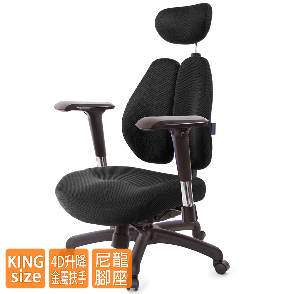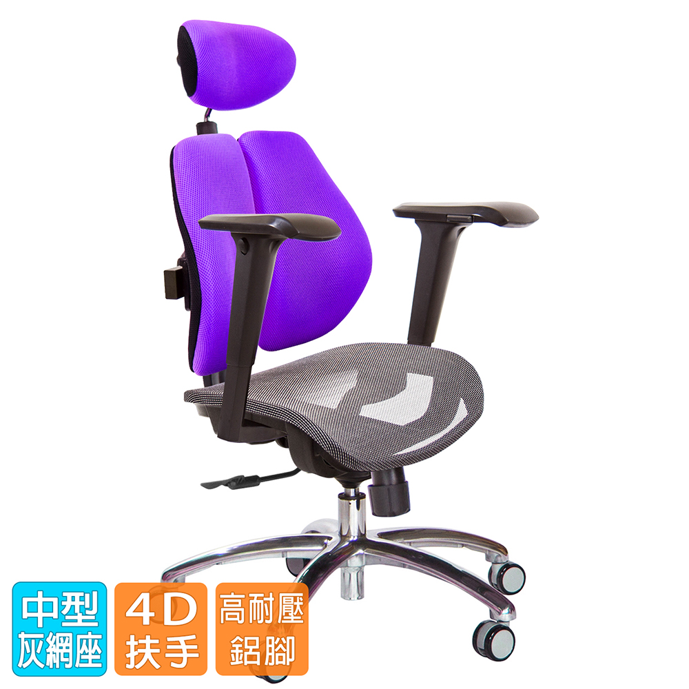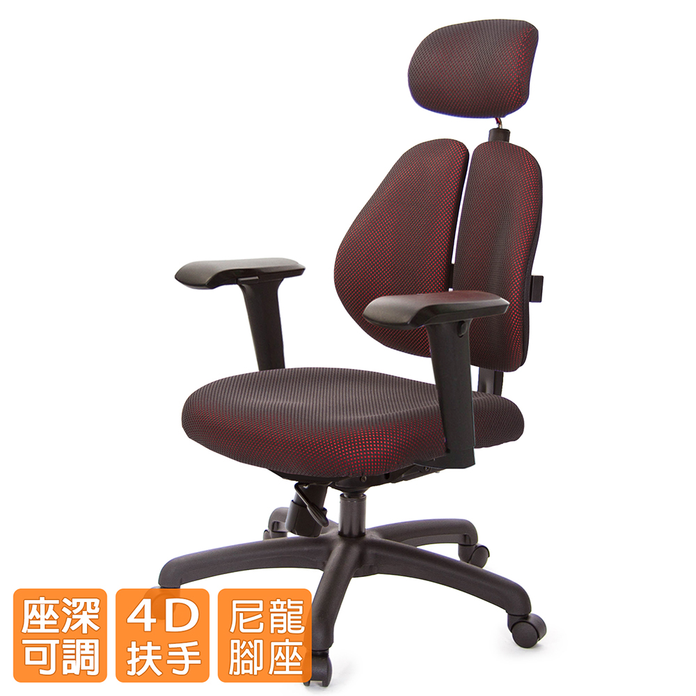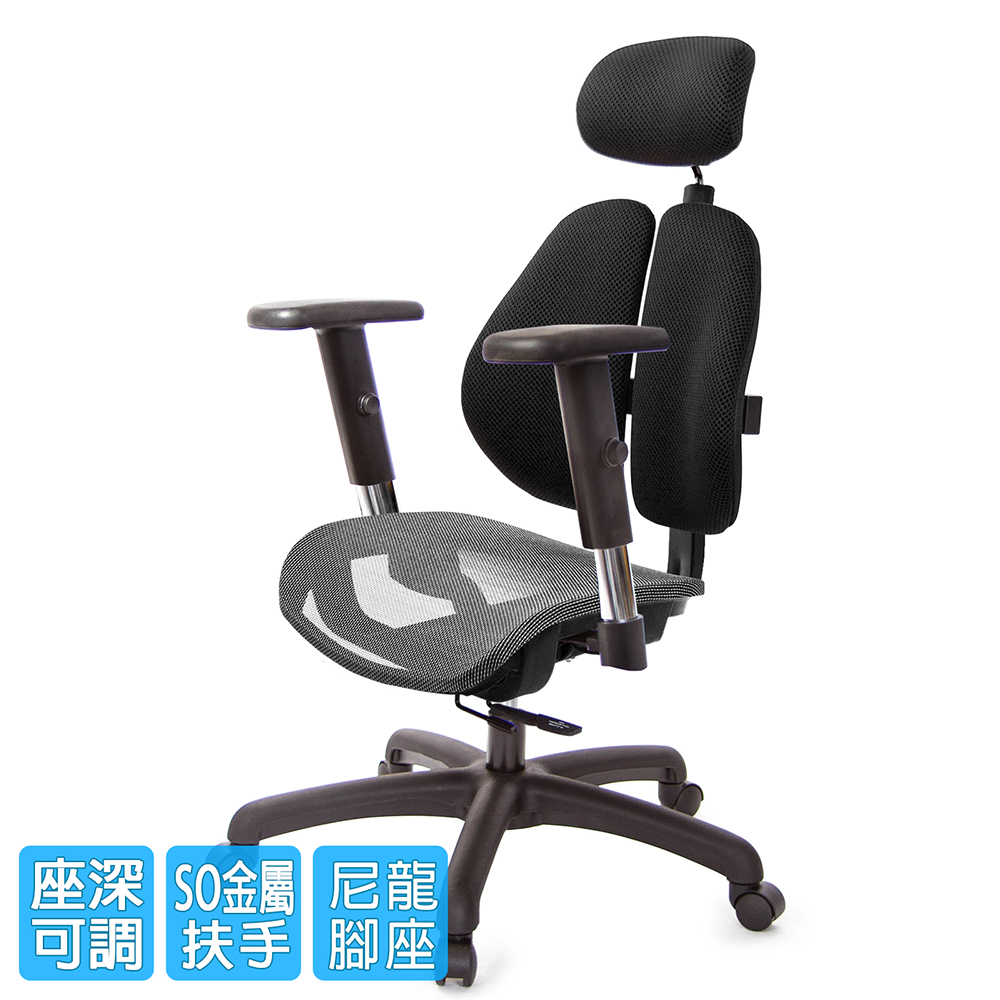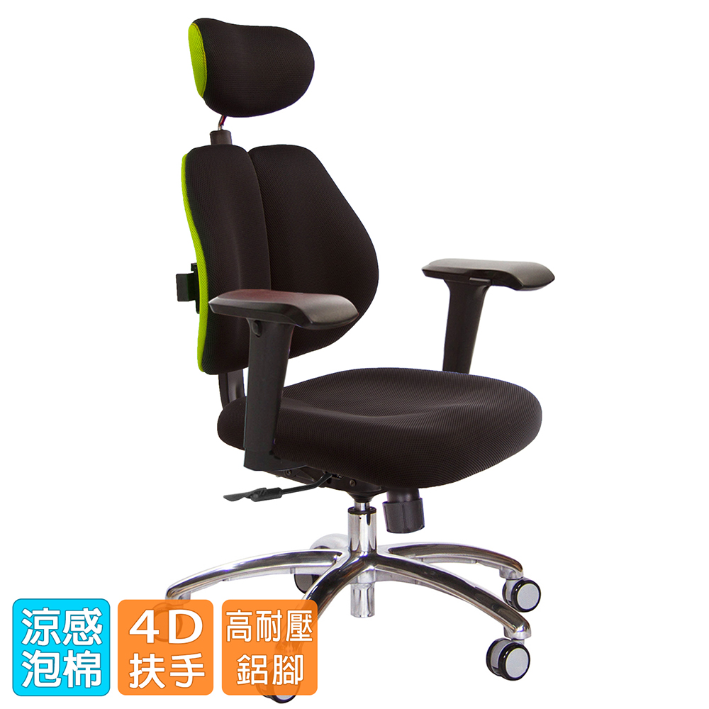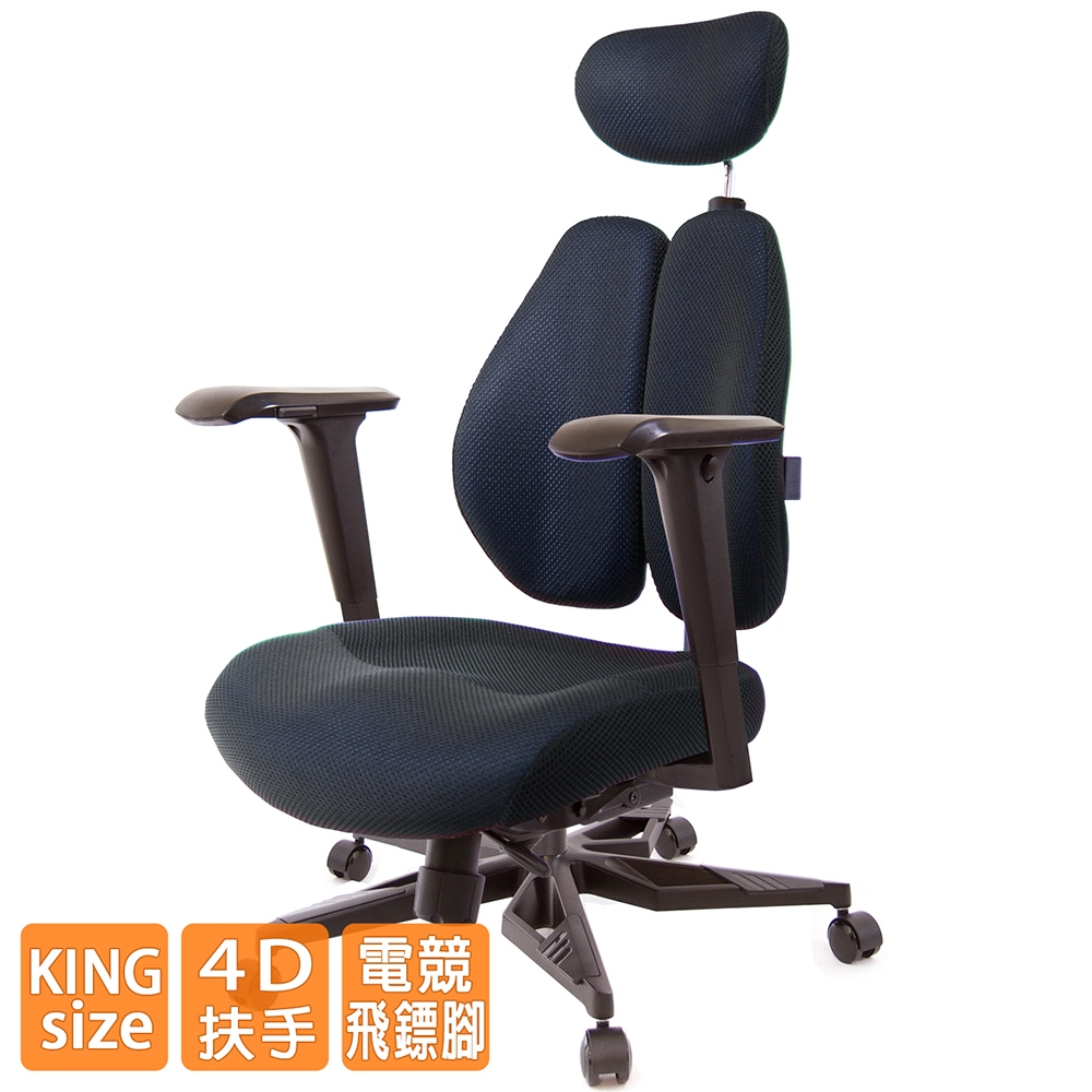 人體工學雙背設計,改善長時間座在椅子上,覺得腰部貼合度不足,有懸空或不夠沉穩的感覺,改良式的雙背背墊,除了完整包覆性外,更提供了『左右彈性』、『上下貼合』、『彈力緩衝』等特性,並有多國國際結構專利認證(台灣、德國、日本、美國、中國等),原廠專利、技術100% Made in Taiwan台灣製造。