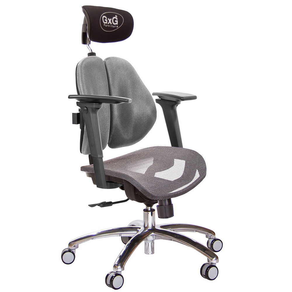 一般的電腦椅,實際上『椅背』大都不能支撐人體腰椎,緣自於人體本身的構造,人體的肩胛骨兩旁延伸至肩膀,其雙肩的壓力,會集中到腰椎中心處形成一個『倒三角的點』,如同一個箭頭向下將壓力壓迫到腰椎,無法讓脊椎肌肉正常釋放重力。 GXG Furniture開發出新式『智慧雙背椅』,提倡健康座、舒適生活,當您坐在一般椅子上,腰椎基本所承受的壓力,是人體自然站立時的140%,而使用『雙背智慧椅』,如同多了一雙手,完整托住您的背部,明顯比一般椅子減輕百分之五十的腰椎壓力,讓腰椎壓力降至75%,改善您長久以來的困擾怎麼坐,都痠痛的問題,能讓您舒適度明顯提升