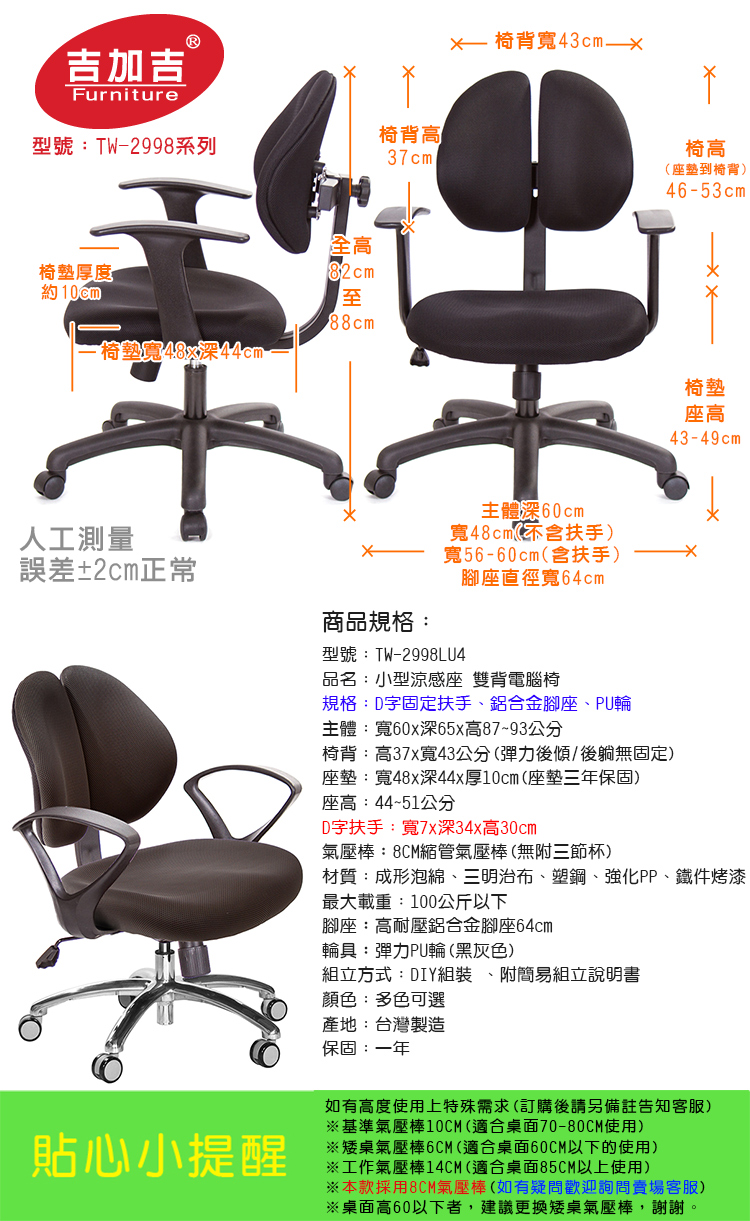 購買注意事項:本座椅高度,均以搭配標準桌高72~75CM使用。