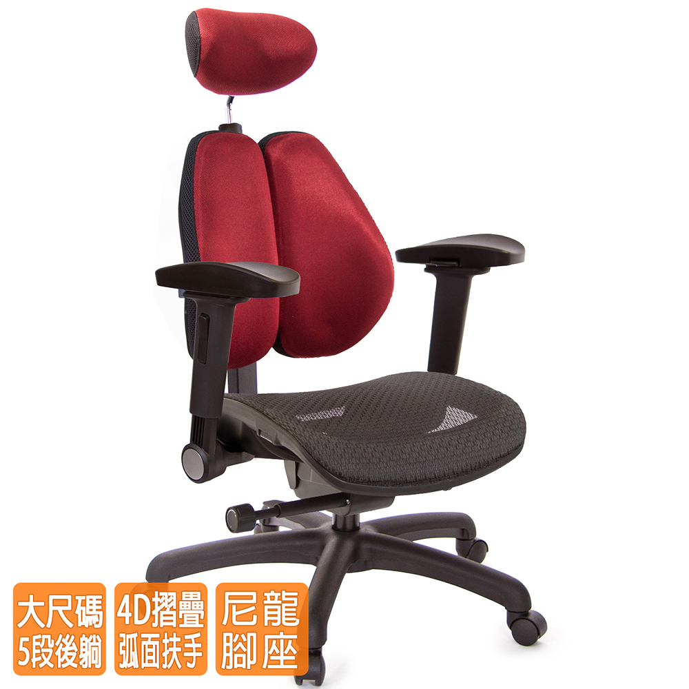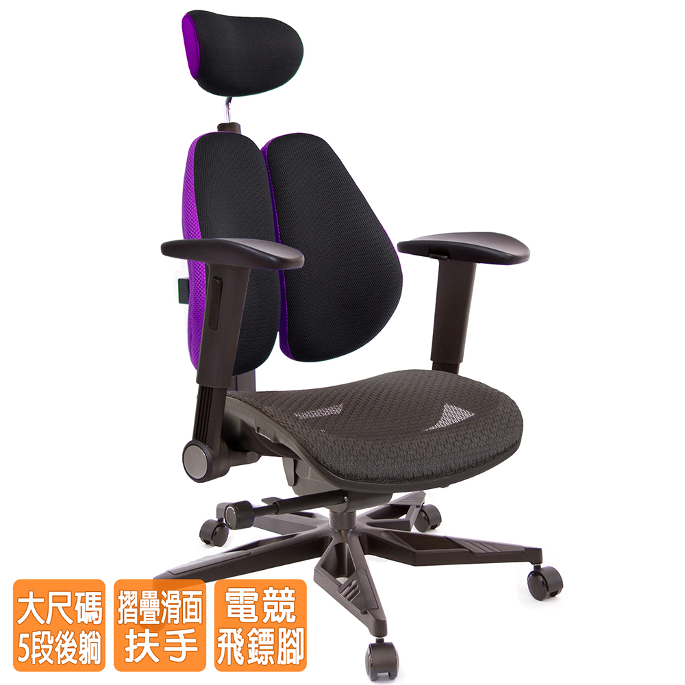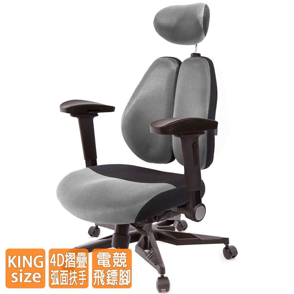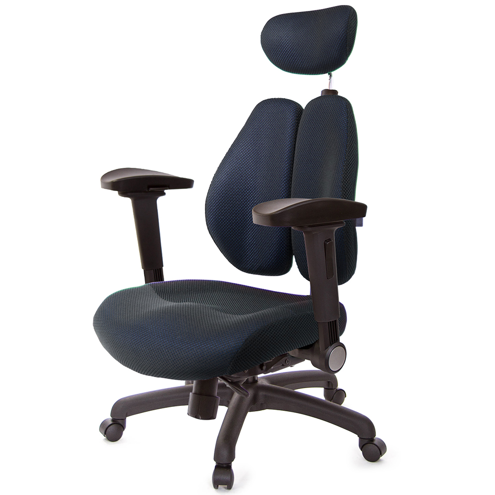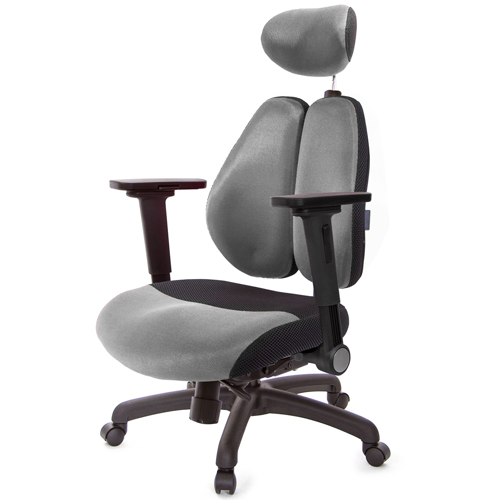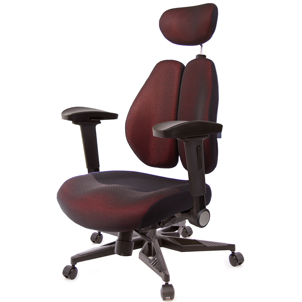 人體工學雙背設計,改善長時間座在椅子上,覺得腰部貼合度不足,有懸空或不夠沉穩的感覺,改良式的雙背背墊,除了完整包覆性外,更提供了『左右彈性』、『上下貼合』、『彈力緩衝』等特性,並有多國國際結構專利認證(台灣、德國、日本、美國、中國等),原廠專利、技術100% Made in Taiwan台灣製造。