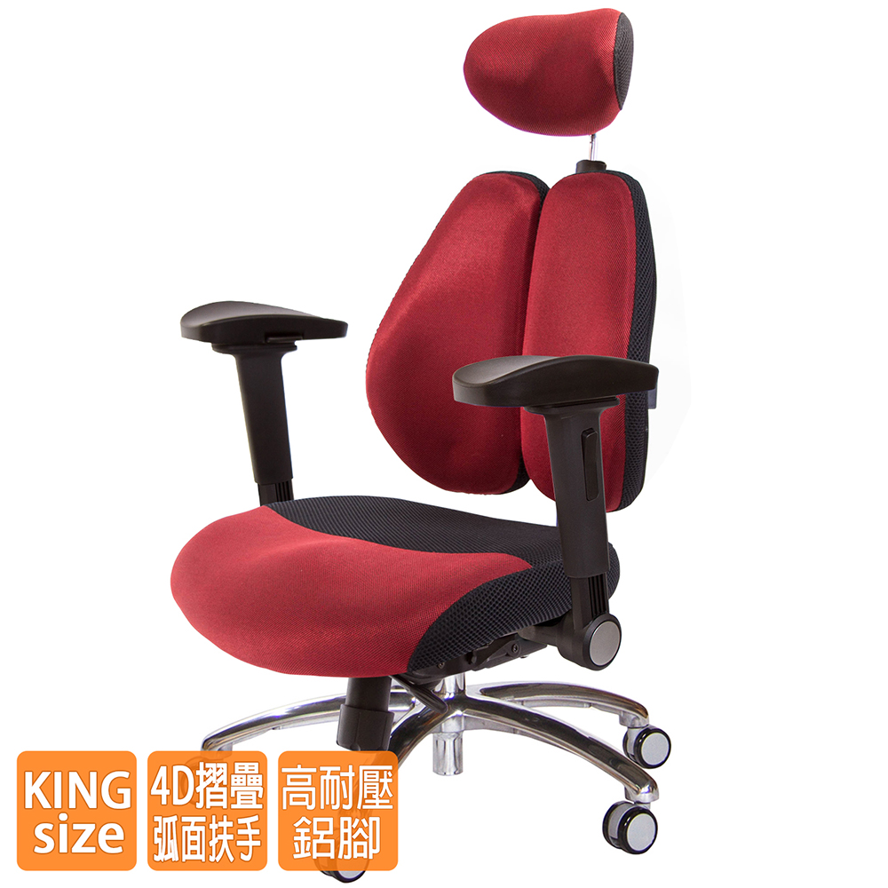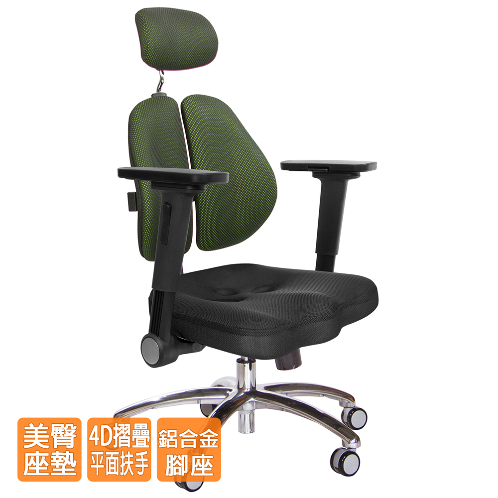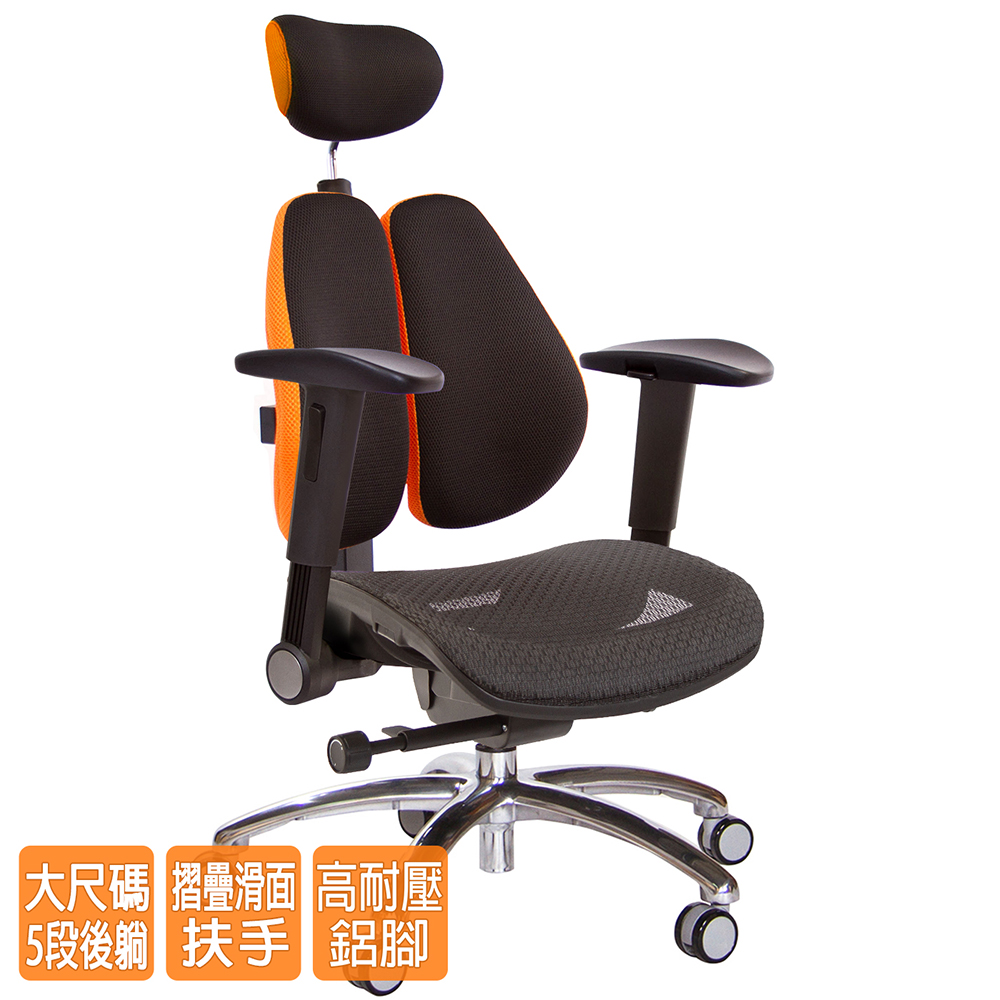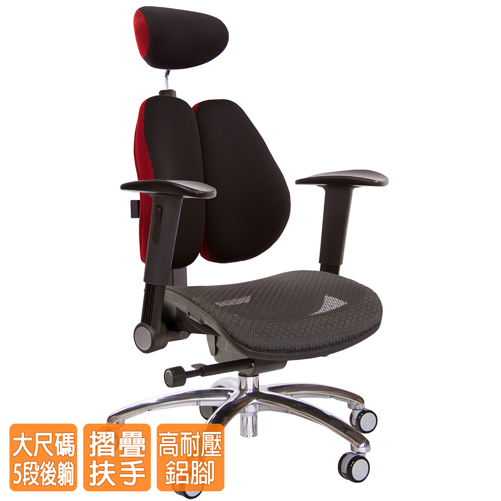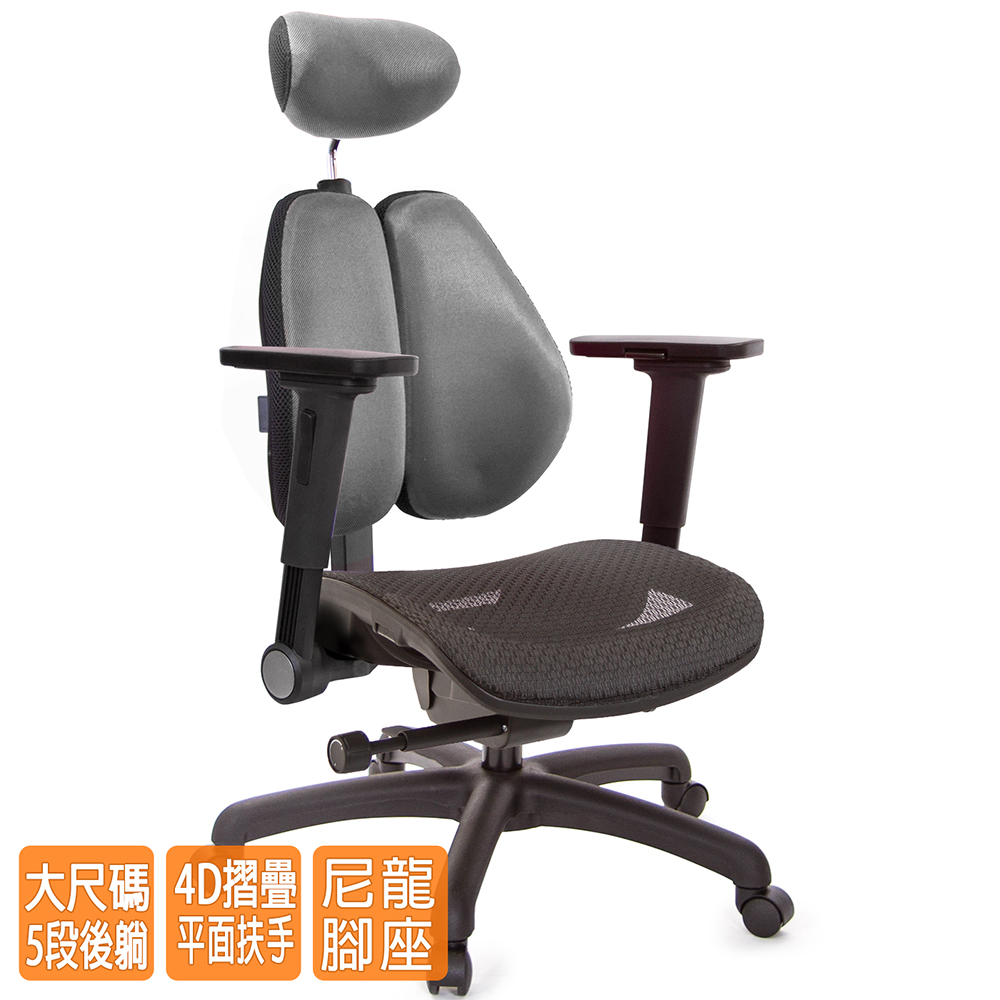 人體工學雙背設計,改善長時間座在椅子上,覺得腰部貼合度不足,有懸空或不夠沉穩的感覺,改良式的雙背背墊,除了完整包覆性外,更提供了『左右彈性』、『上下貼合』、『彈力緩衝』等特性,並有多國國際結構專利認證(台灣、德國、日本、美國、中國等),原廠專利、技術100% Made in Taiwan台灣製造。