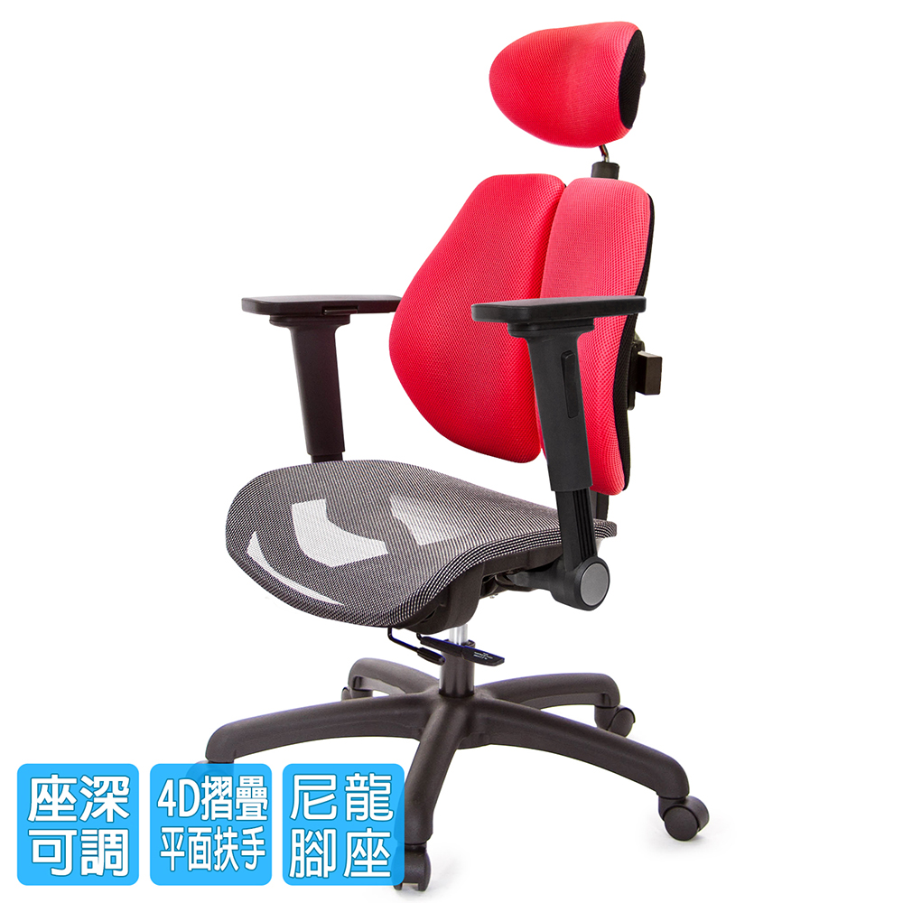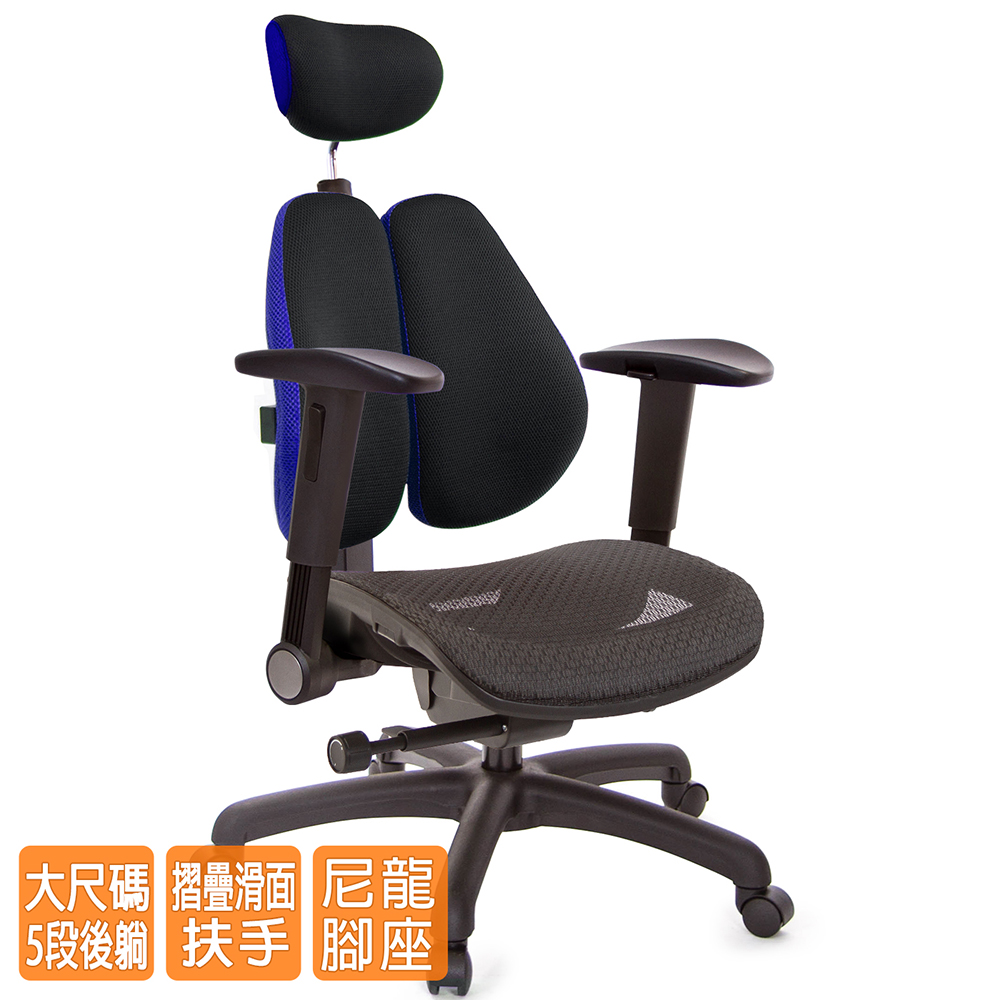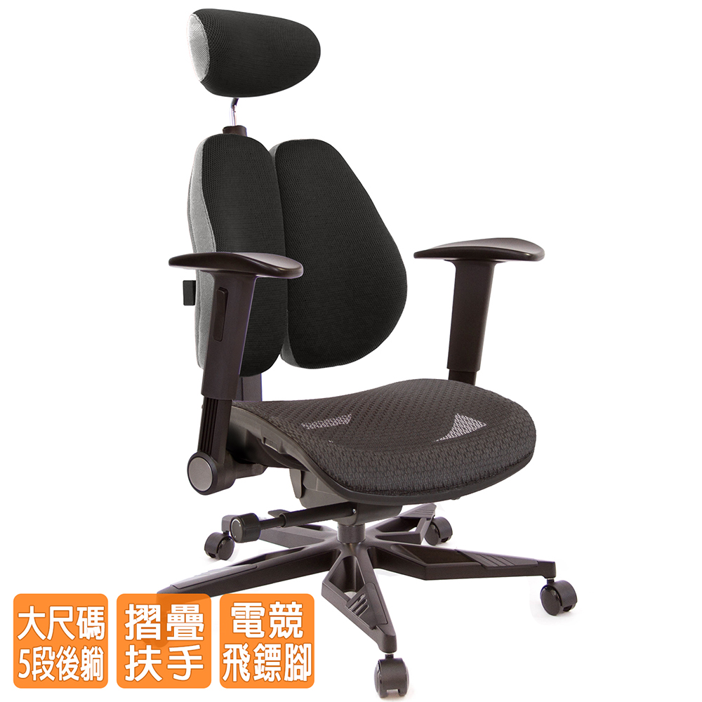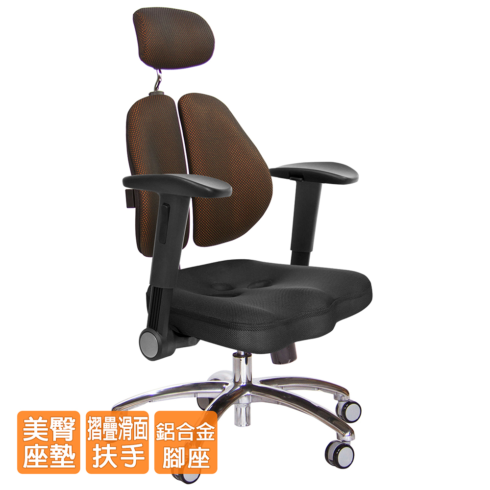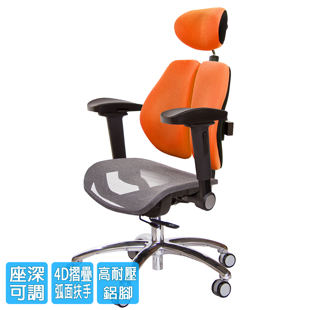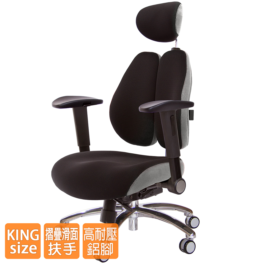 人體工學雙背設計,改善長時間座在椅子上,覺得腰部貼合度不足,有懸空或不夠沉穩的感覺,改良式的雙背背墊,除了完整包覆性外,更提供了『左右彈性』、『上下貼合』、『彈力緩衝』等特性,並有多國國際結構專利認證(台灣、德國、日本、美國、中國等),原廠專利、技術100% Made in Taiwan台灣製造。