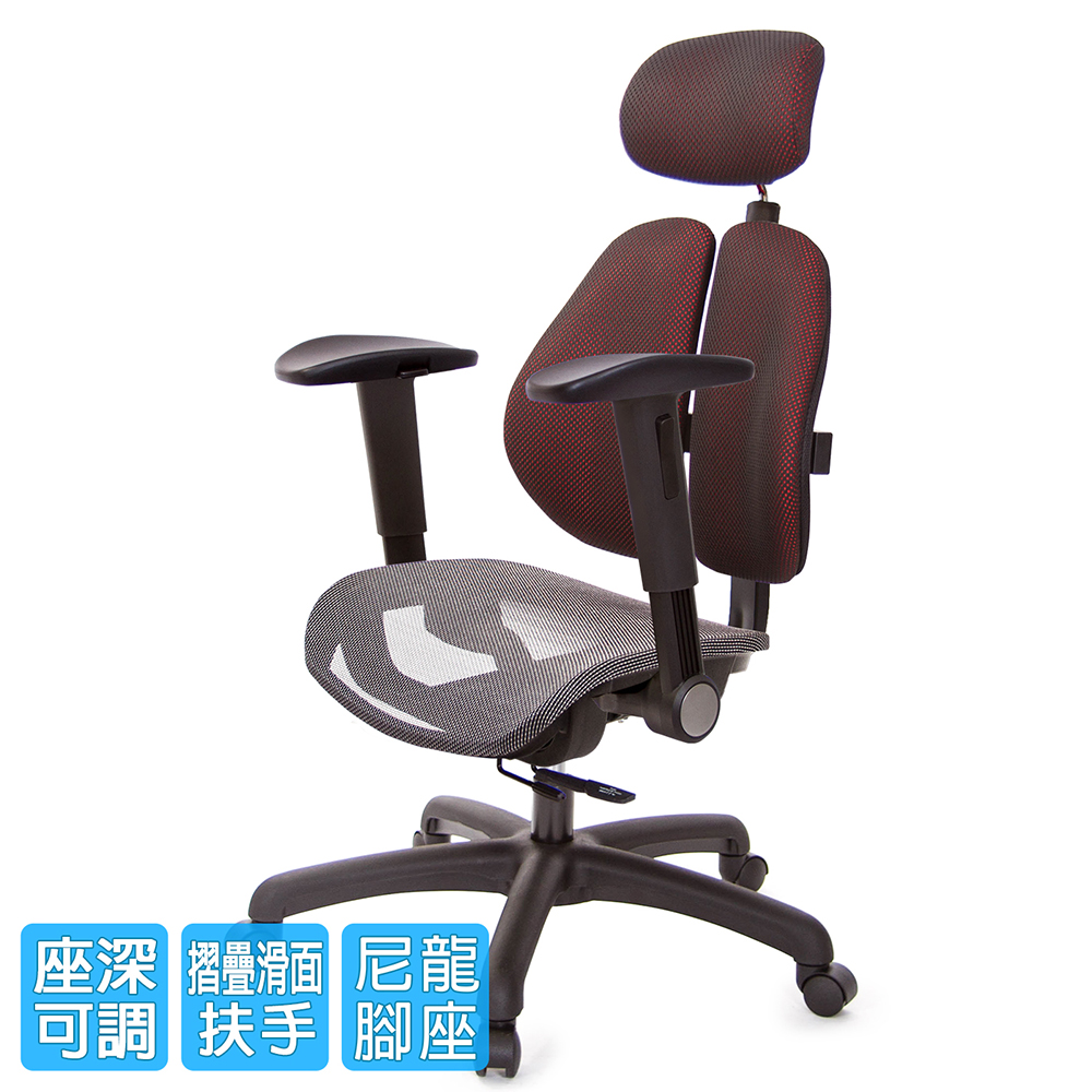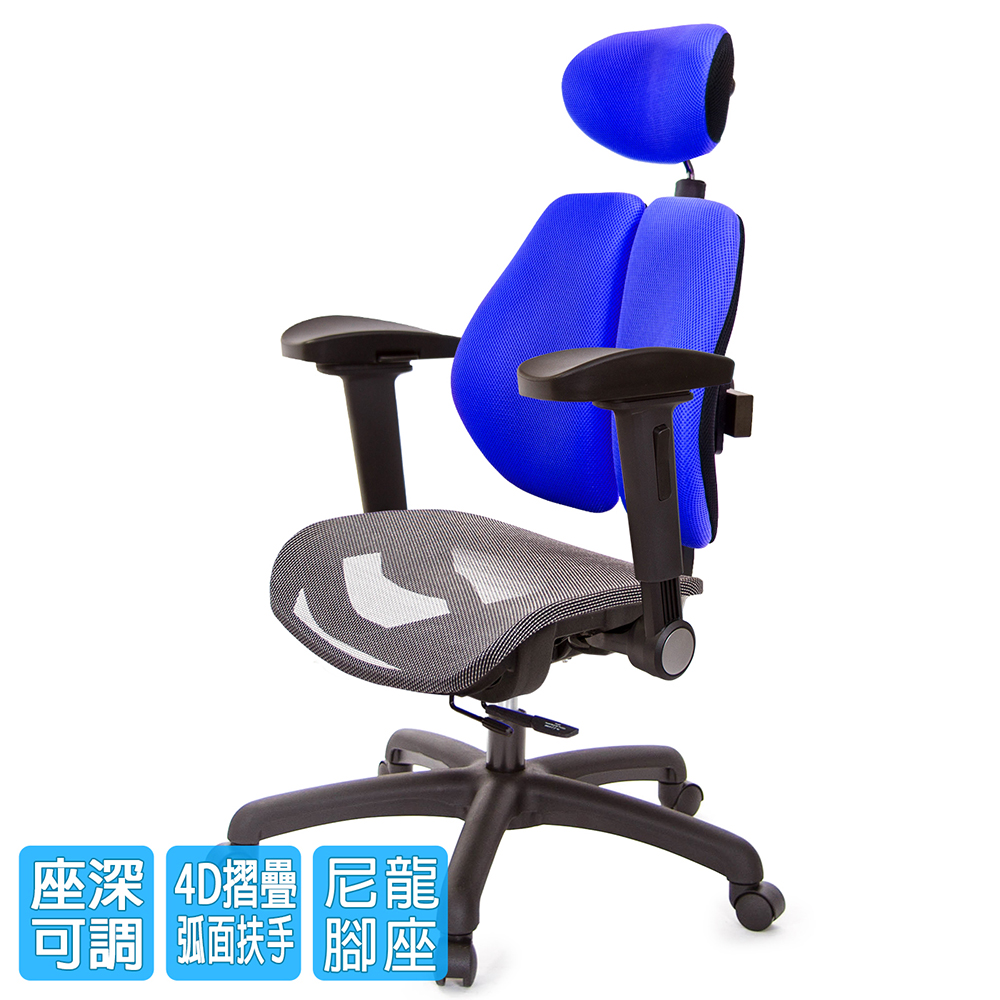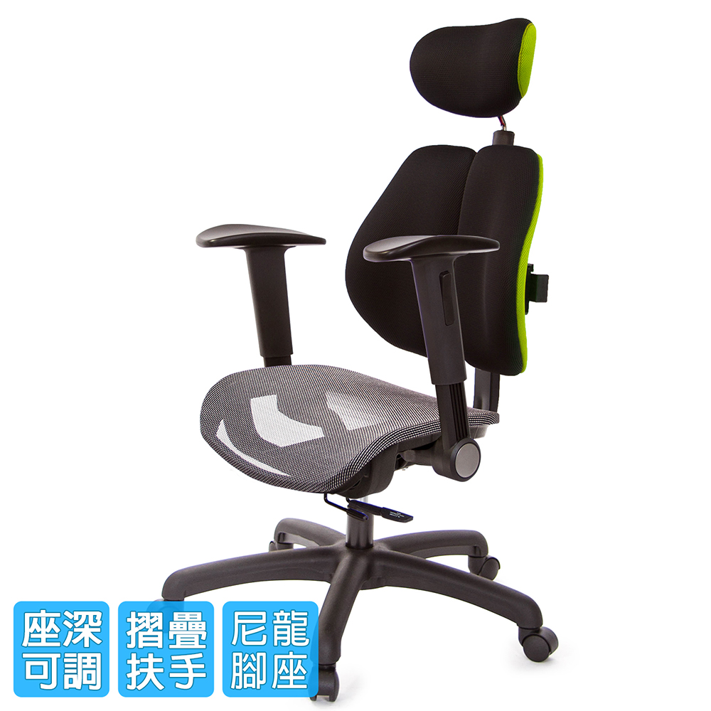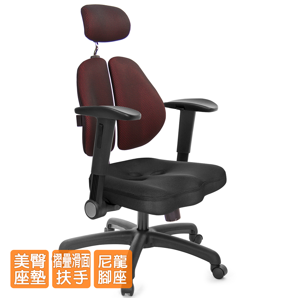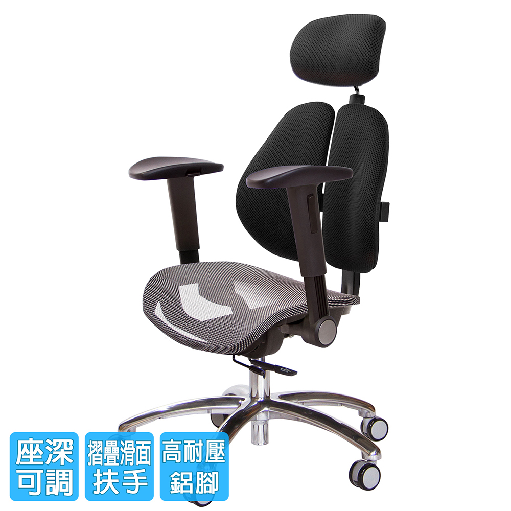 人體工學雙背設計,改善長時間座在椅子上,覺得腰部貼合度不足,有懸空或不夠沉穩的感覺,改良式的雙背背墊,除了完整包覆性外,更提供了『左右彈性』、『上下貼合』、『彈力緩衝』等特性,並有多國國際結構專利認證(台灣、德國、日本、美國、中國等),原廠專利、技術100% Made in Taiwan台灣製造。