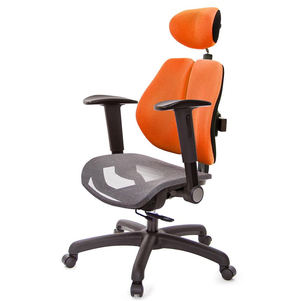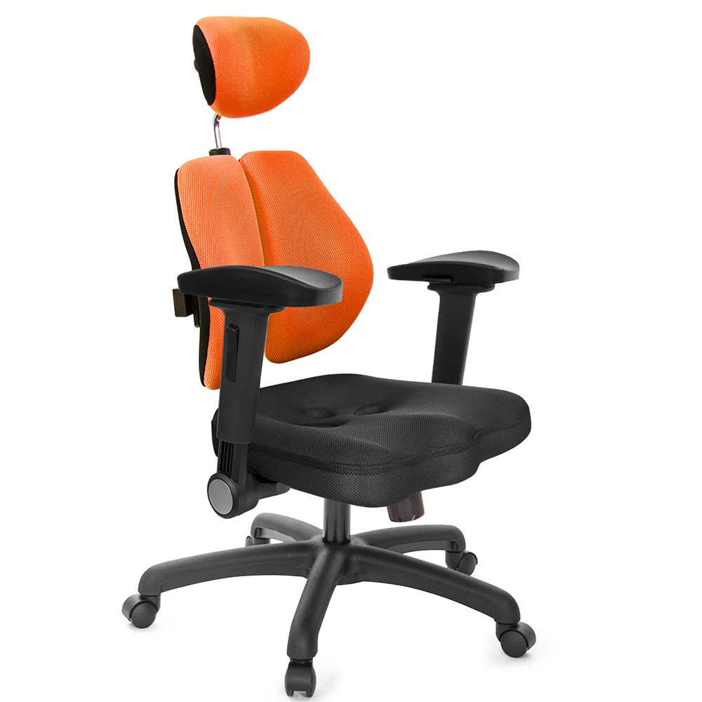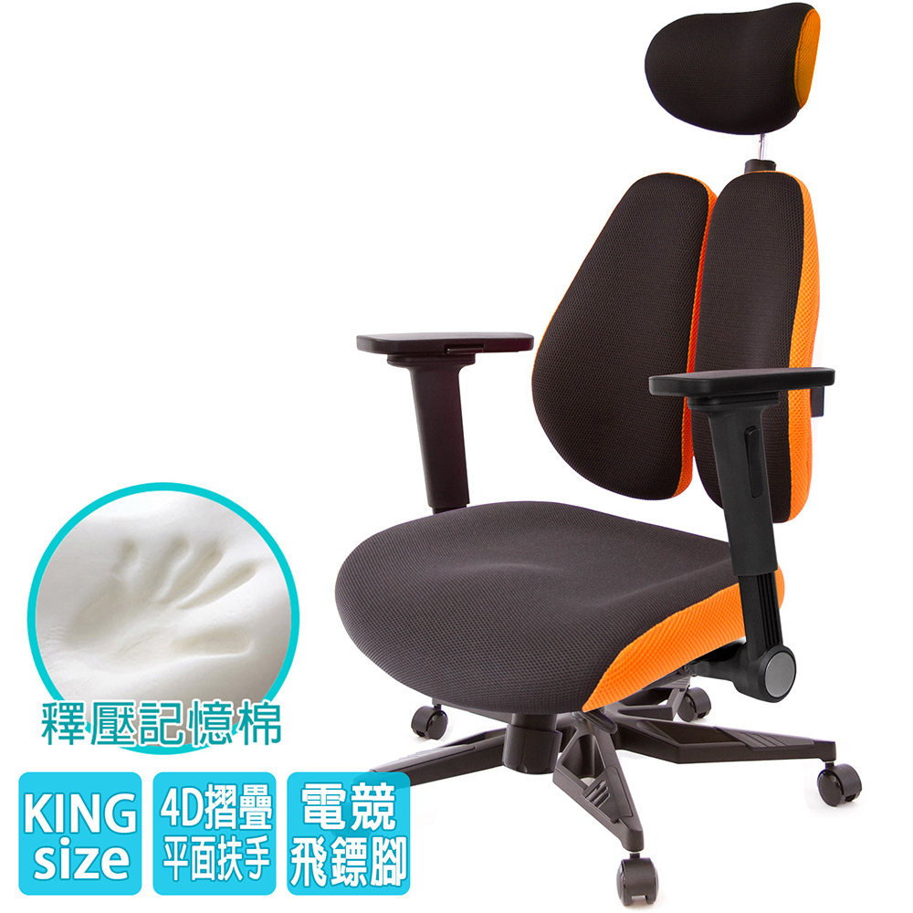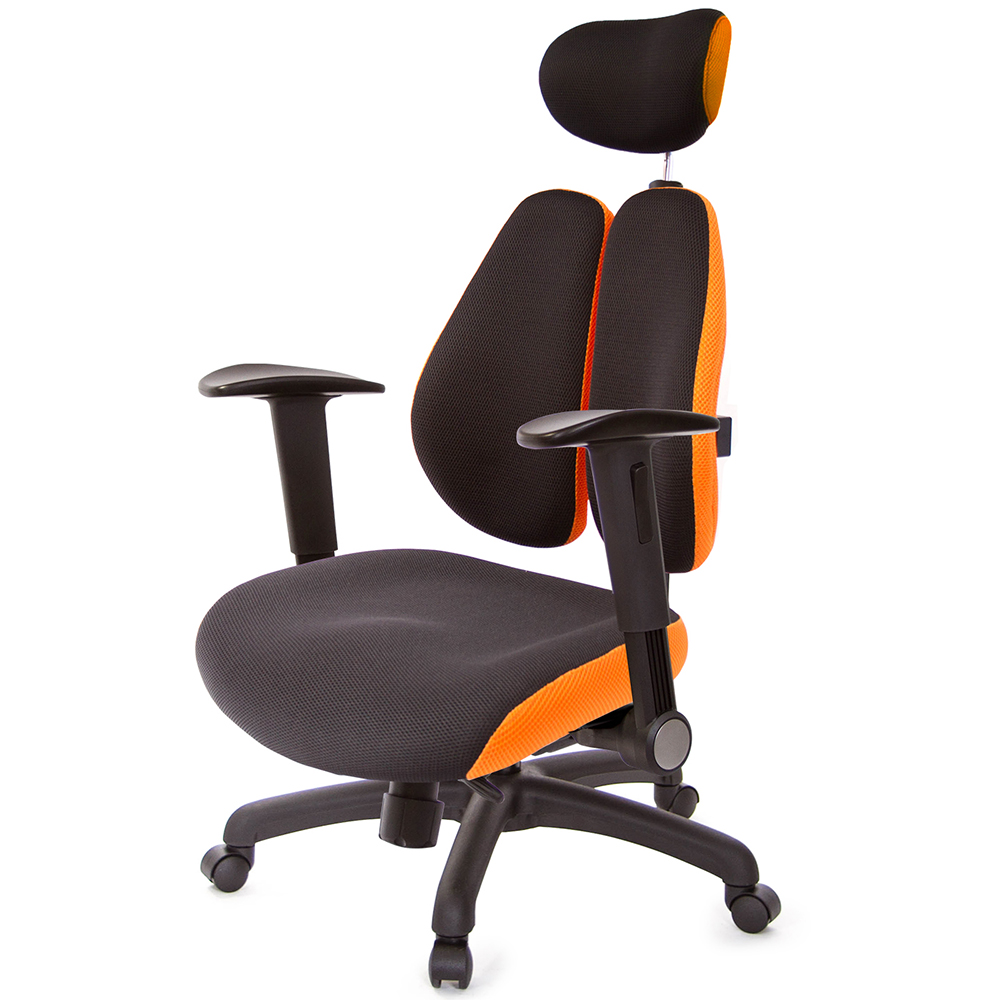 高背款雙背椅 TW-3008KGA1H (黑面亮橘色+記憶枕)示意圖
