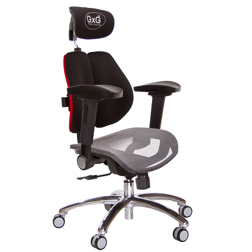 一般的電腦椅,實際上『椅背』大都不能支撐人體腰椎,緣自於人體本身的構造,人體的肩胛骨兩旁延伸至肩膀,其雙肩的壓力,會集中到腰椎中心處形成一個『倒三角的點』,如同一個箭頭向下將壓力壓迫到腰椎,無法讓脊椎肌肉正常釋放重力。 GXG Furniture開發出新式『智慧雙背椅』,提倡健康座、舒適生活,當您坐在一般椅子上,腰椎基本所承受的壓力,是人體自然站立時的140%,而使用『雙背智慧椅』,如同多了一雙手,完整托住您的背部,明顯比一般椅子減輕百分之五十的腰椎壓力,讓腰椎壓力降至75%,改善您長久以來的困擾怎麼坐,都痠痛的問題,能讓您舒適度明顯提升