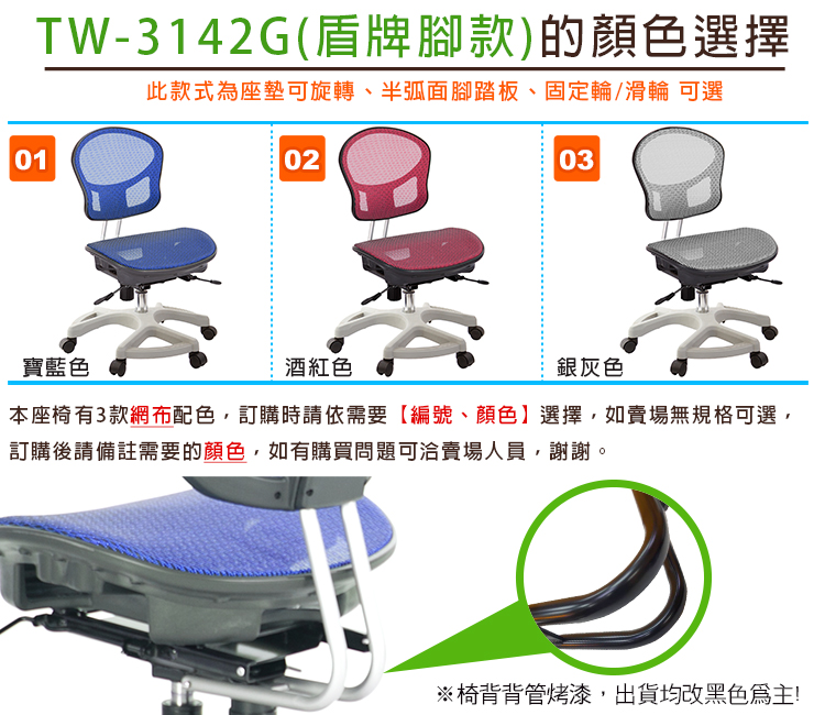 ※椅背鐵件烤漆,現出貨均改黑色為主。