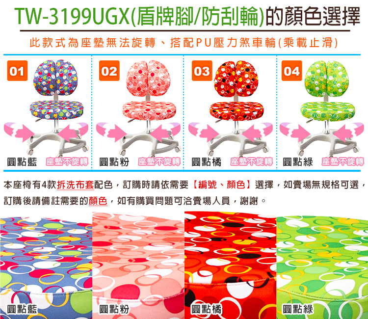 TW-3199UGX 兒童雙背椅《盾牌腳》 圓點果綠色 示意圖