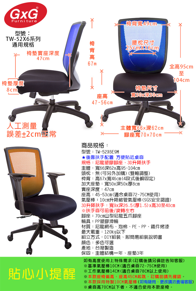 購買注意事項:本座椅高度,均以搭配標準桌高72~75CM使用。