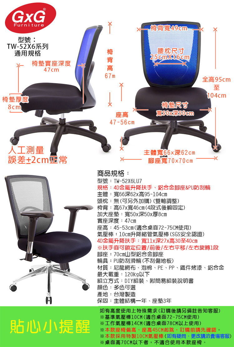 購買注意事項:本座椅高度,均以搭配標準桌高72~75CM使用。