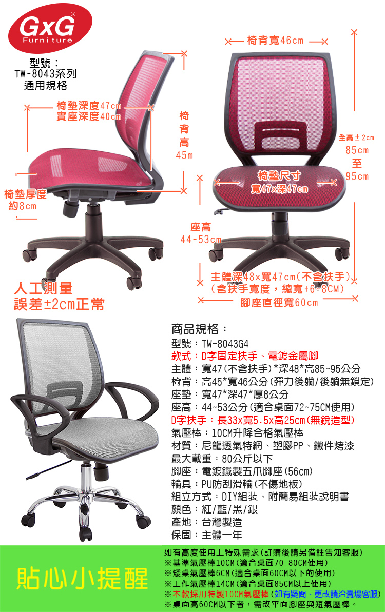 ※本款座高最低點為44CM,主體總耐重90kg以下