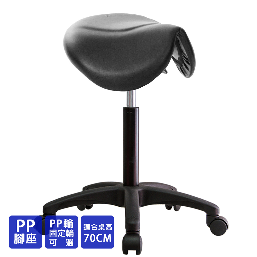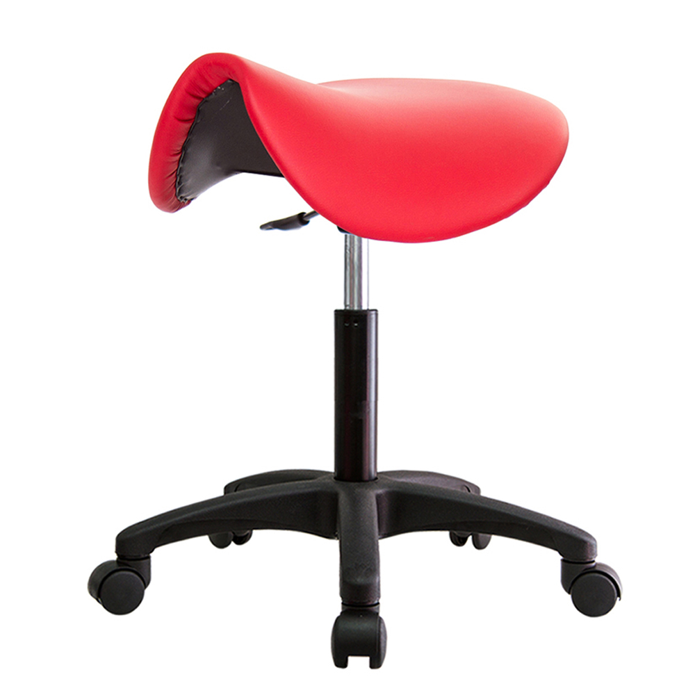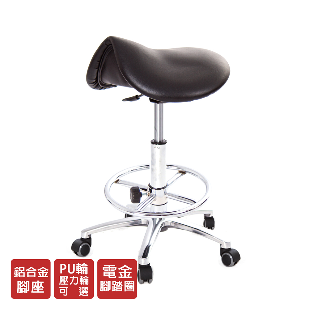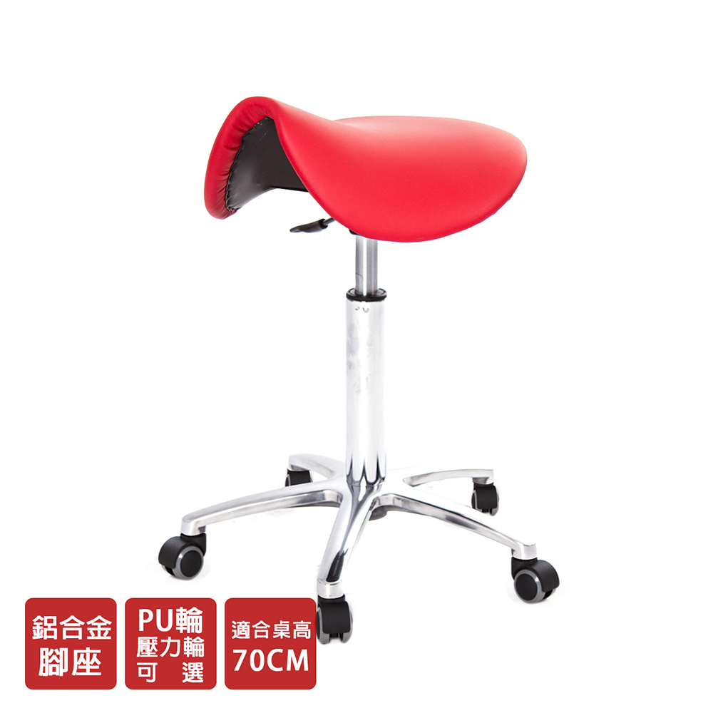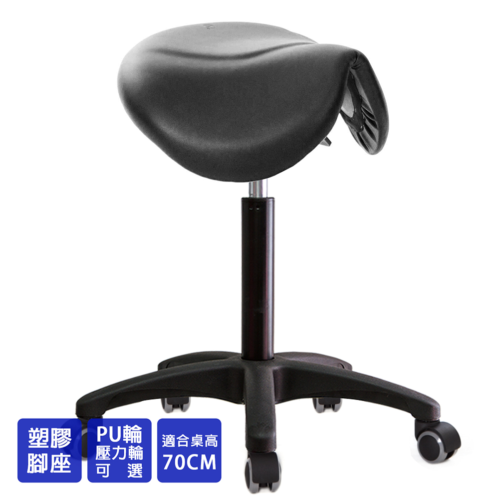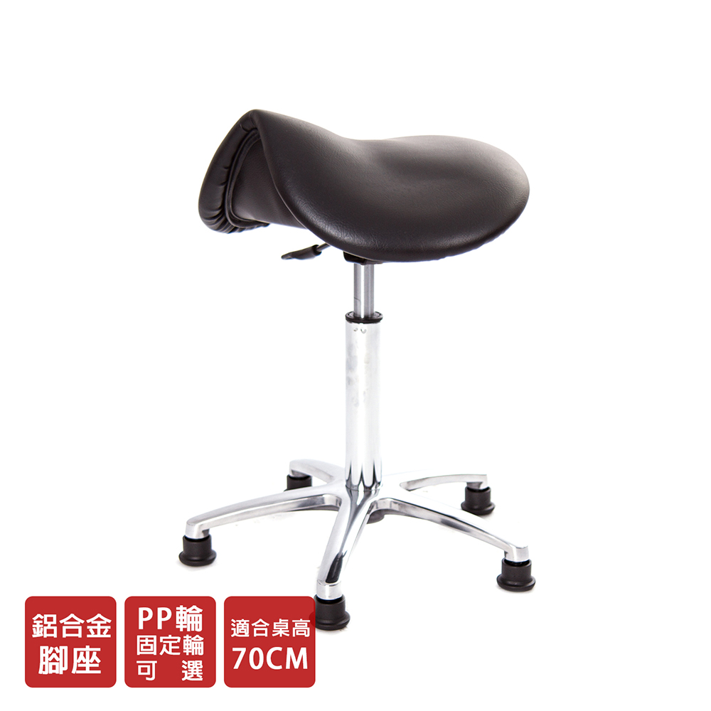 仿馬鞍造型坐墊,能大大降低久座時,臀部造成壓力,當全身重量集中在人體臀部、尾椎,一般的平面工作椅無法將壓力釋放,會累積在臀部,透過馬鞍椅工作,雙腿較集中於人體中心下盤,將累積的重量,透過雙腿平均釋放,有效減輕脊椎與臀部壓力。