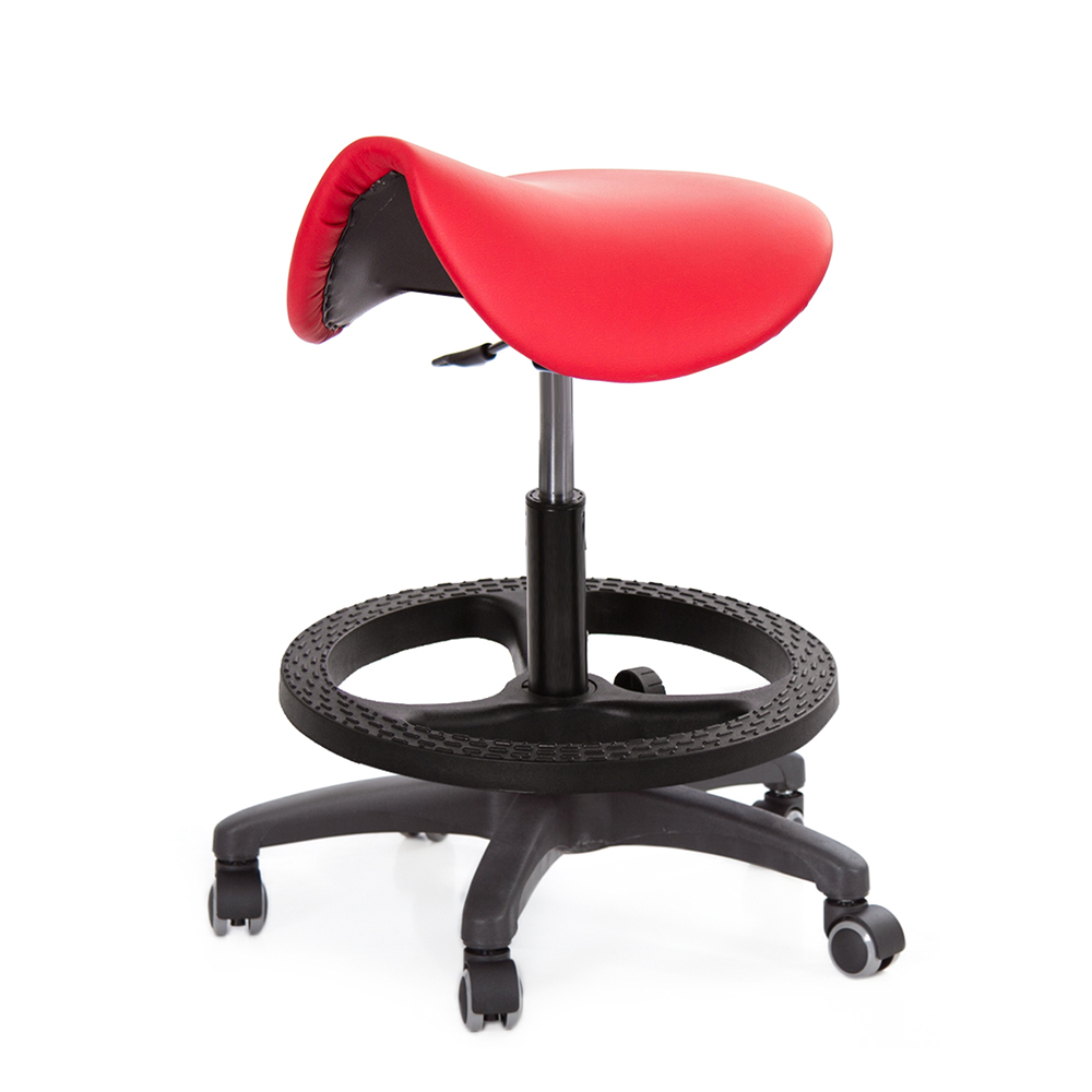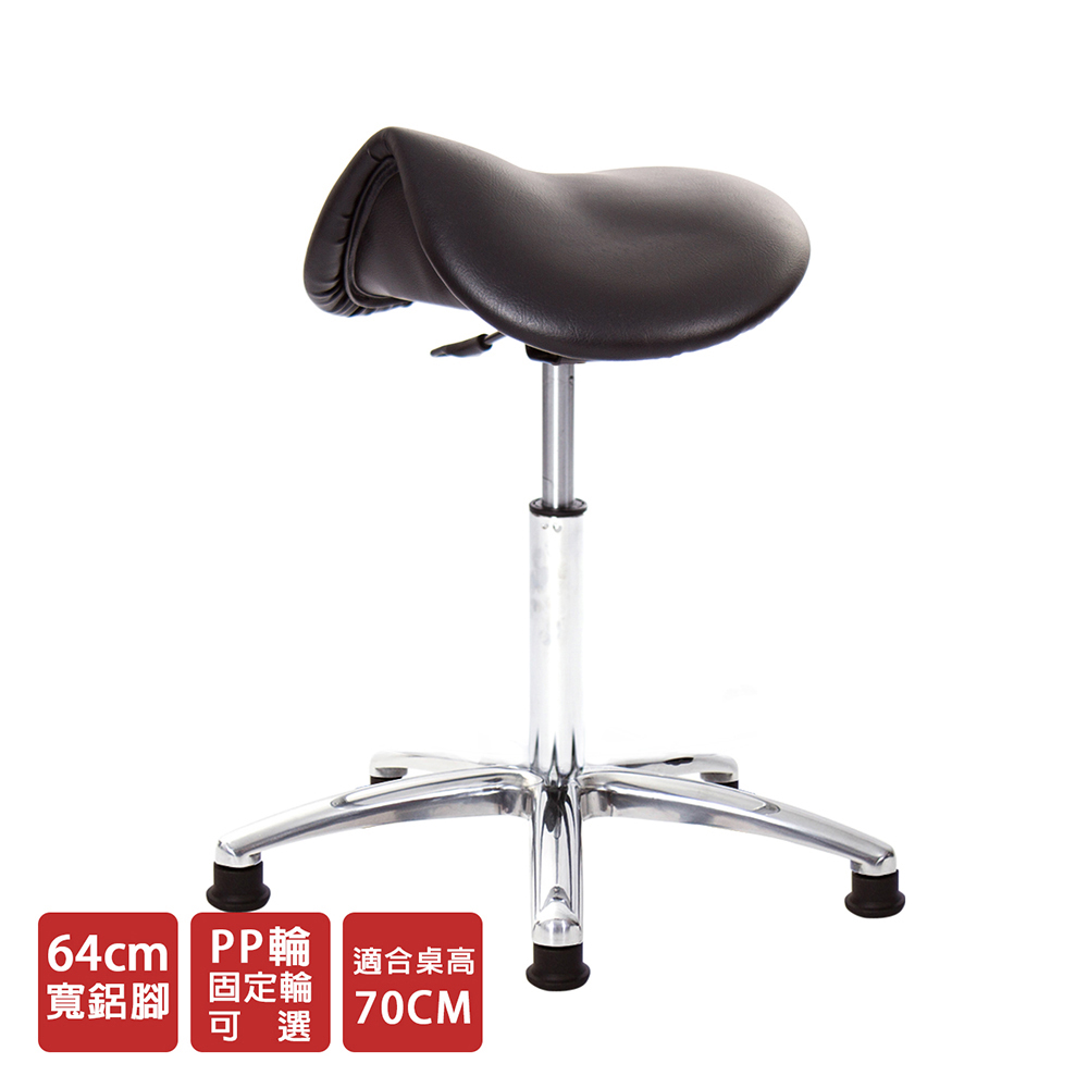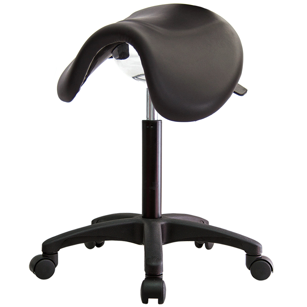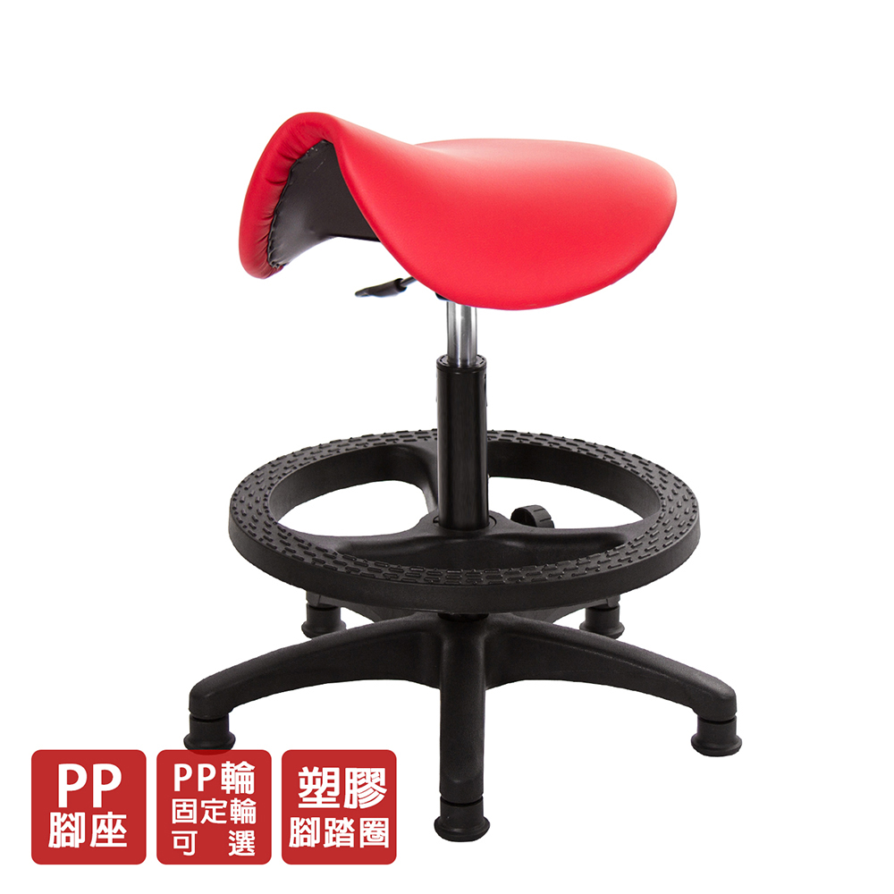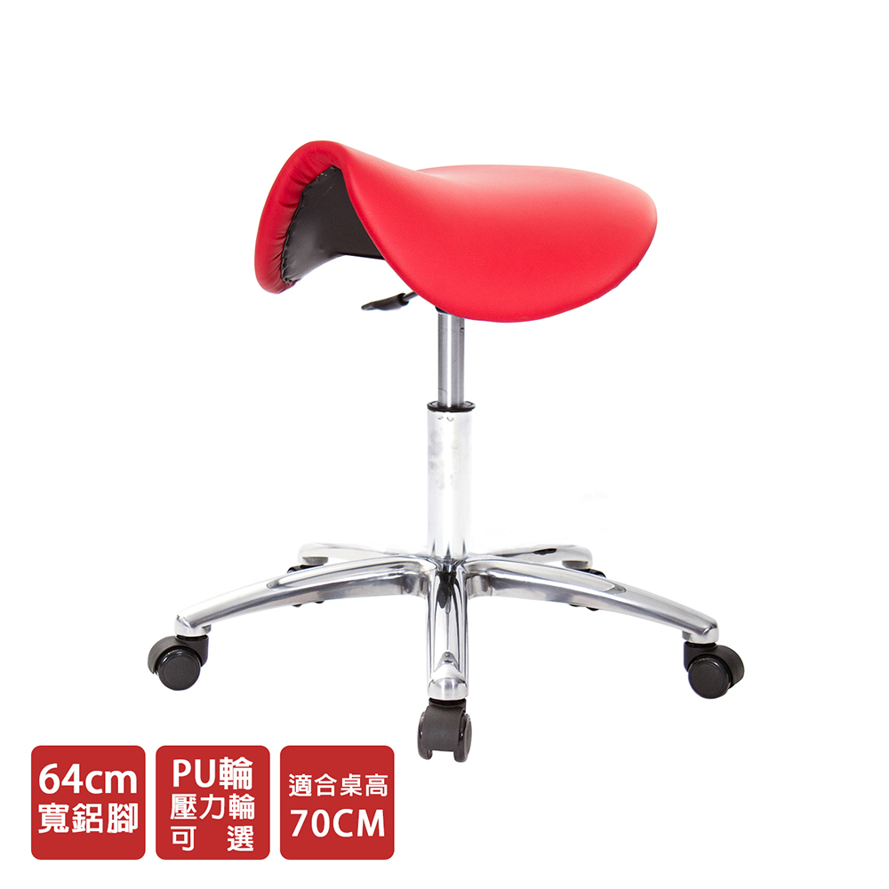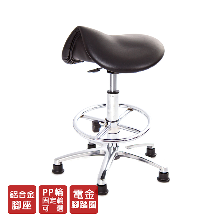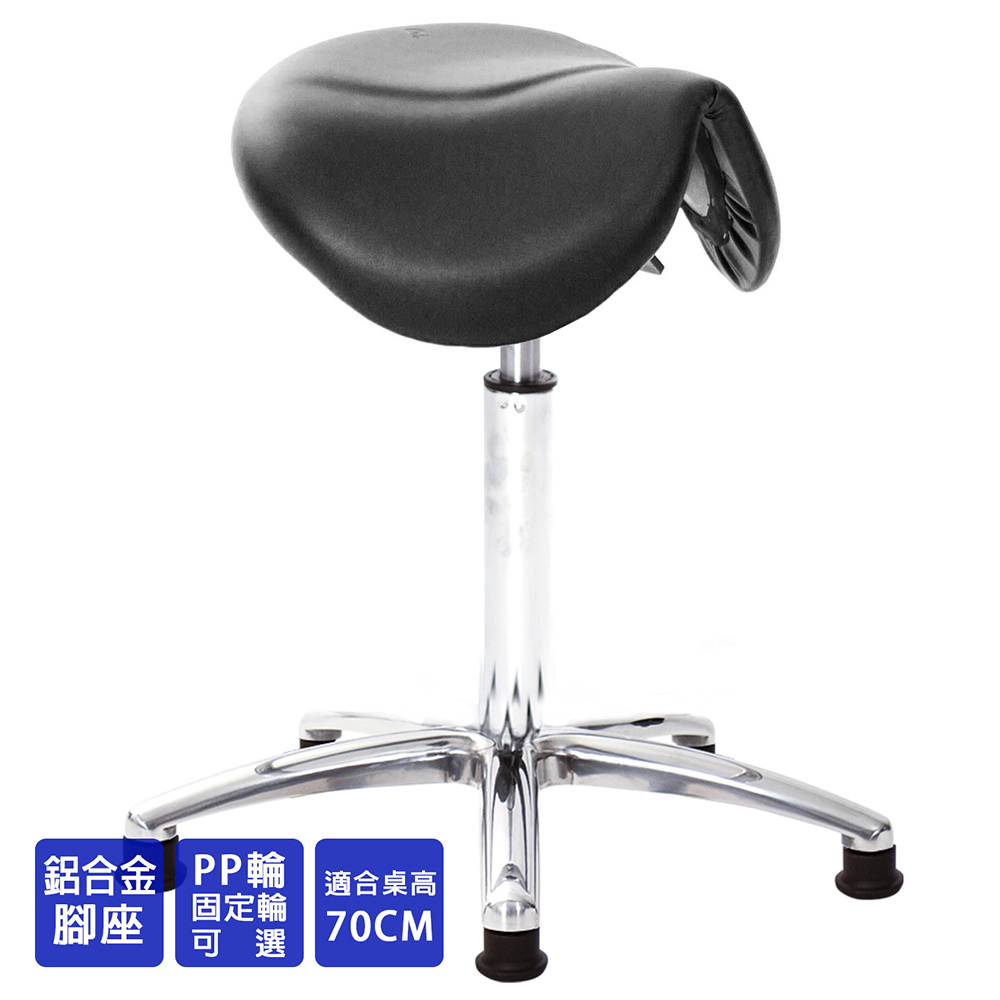 仿馬鞍造型坐墊,能大大降低久座時,臀部造成壓力,當全身重量集中在人體臀部、尾椎,一般的平面工作椅無法將壓力釋放,會累積在臀部,透過馬鞍椅工作,雙腿較集中於人體中心下盤,將累積的重量,透過雙腿平均釋放,有效減輕脊椎與臀部壓力。