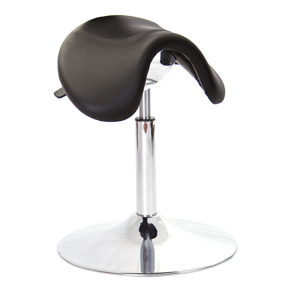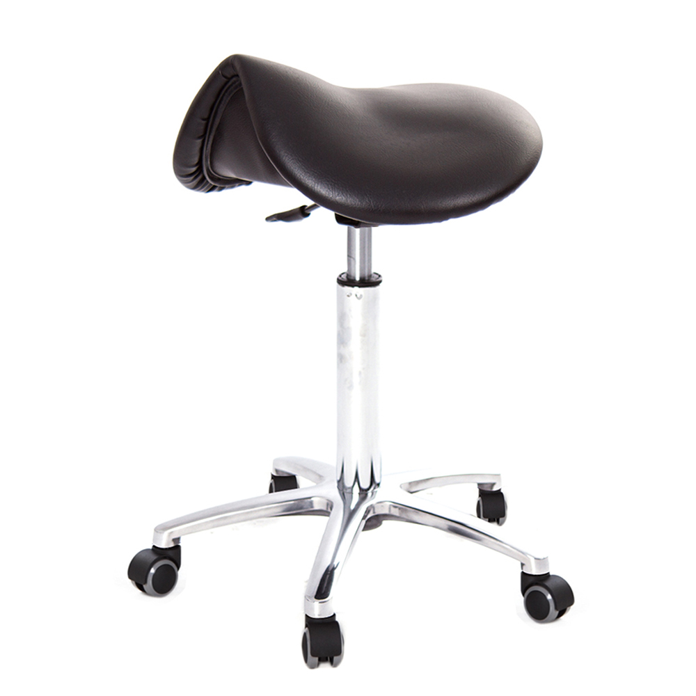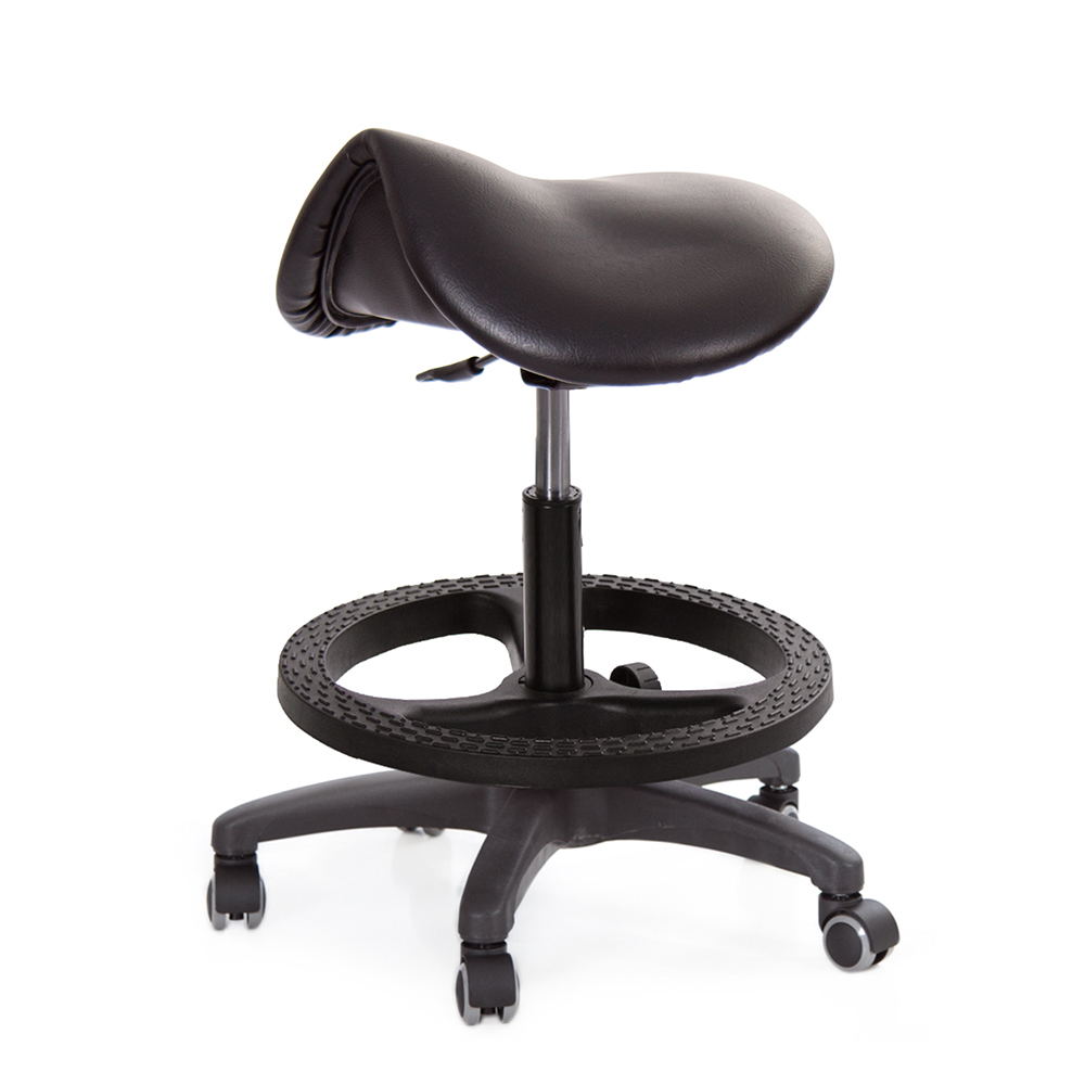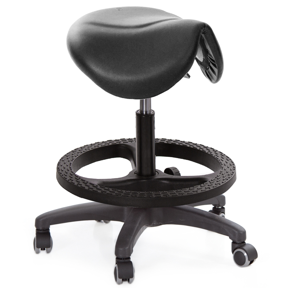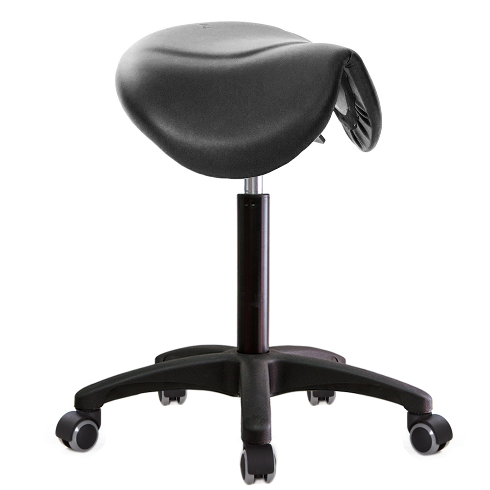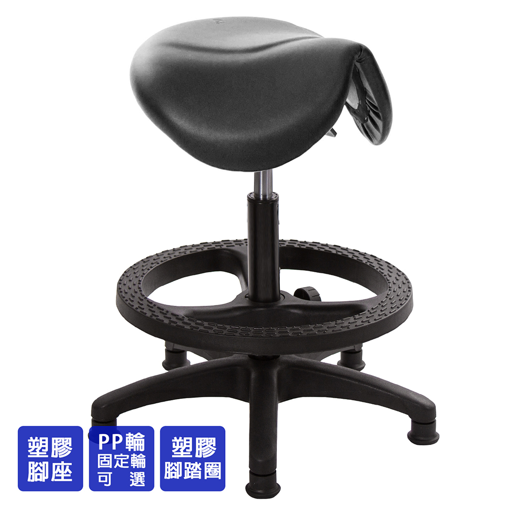仿馬鞍造型坐墊,能大大降低久座時,臀部造成壓力,當全身重量集中在人體臀部、尾椎,一般的平面工作椅無法將壓力釋放,會累積在臀部,透過馬鞍椅工作,雙腿較集中於人體中心下盤,將累積的重量,透過雙腿平均釋放,有效減輕脊椎與臀部壓力。