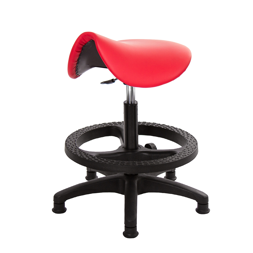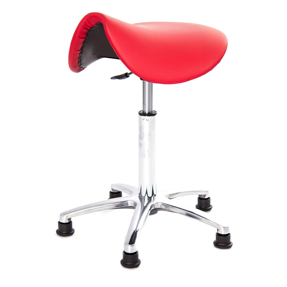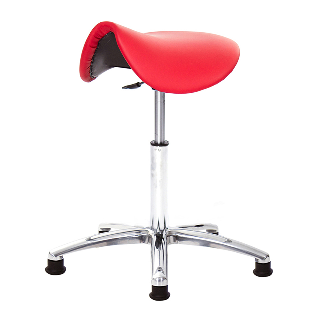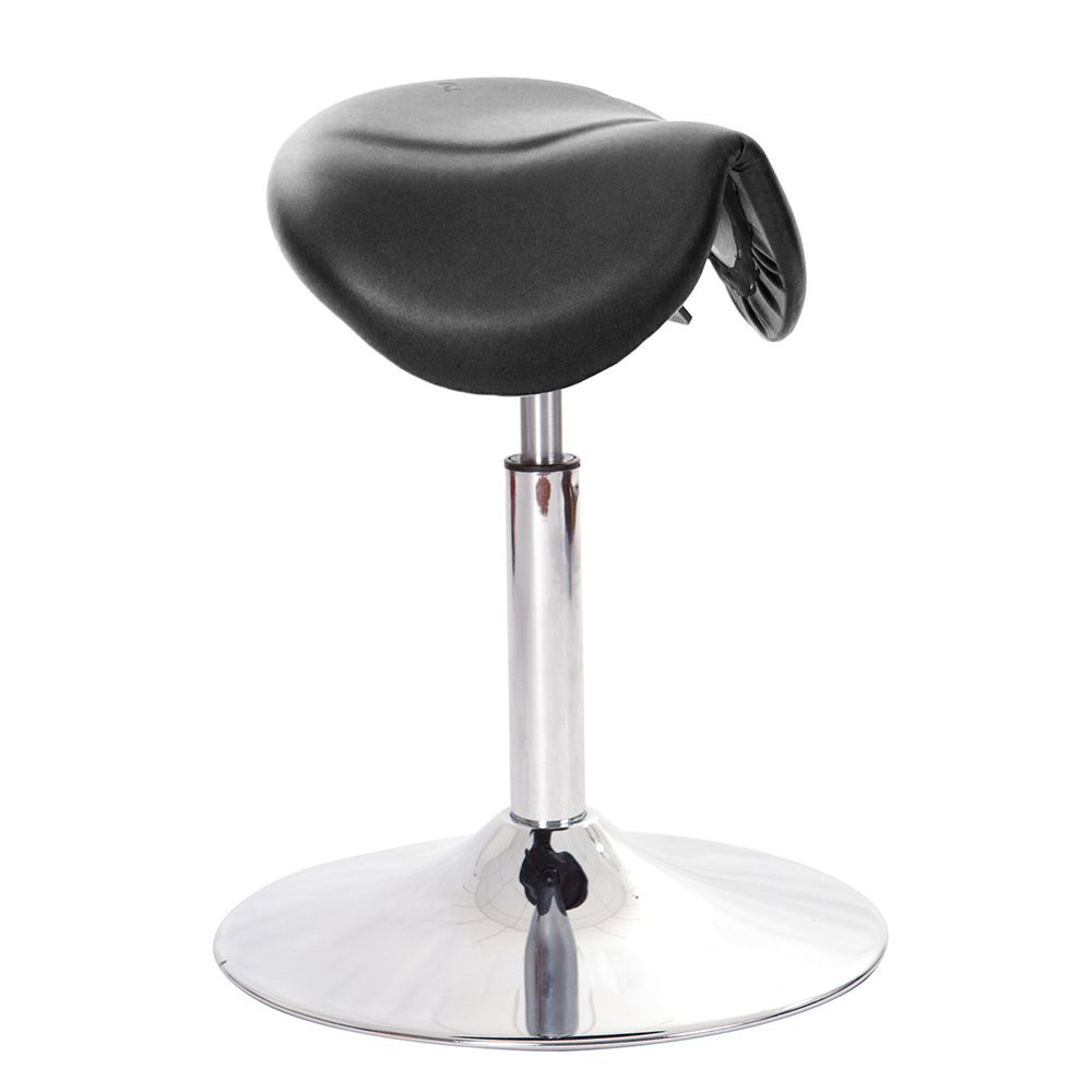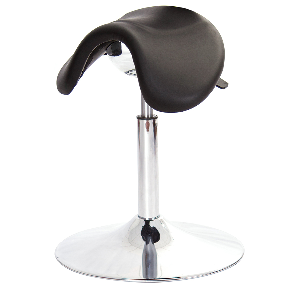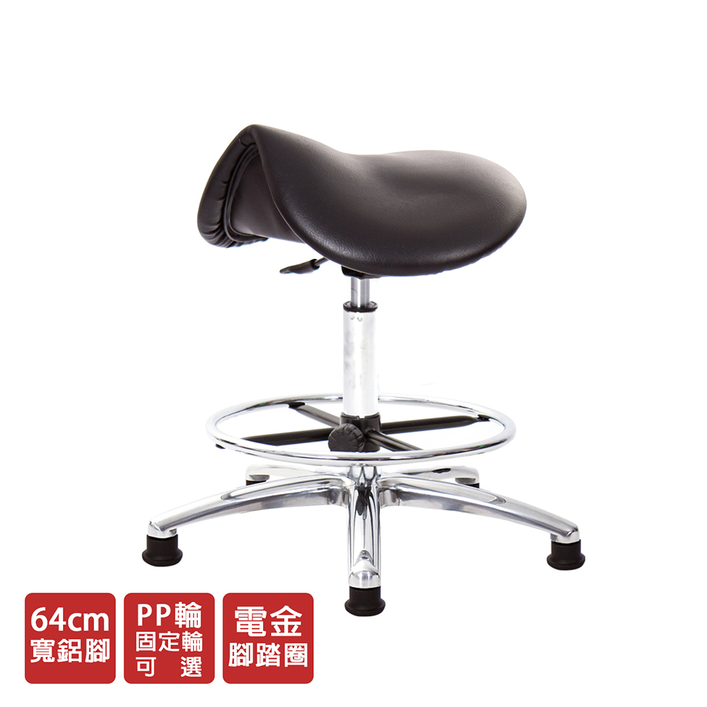 仿馬鞍造型坐墊,能大大降低久座時,臀部造成壓力,當全身重量集中在人體臀部、尾椎,一般的平面工作椅無法將壓力釋放,會累積在臀部,透過馬鞍椅工作,雙腿較集中於人體中心下盤,將累積的重量,透過雙腿平均釋放,有效減輕脊椎與臀部壓力。