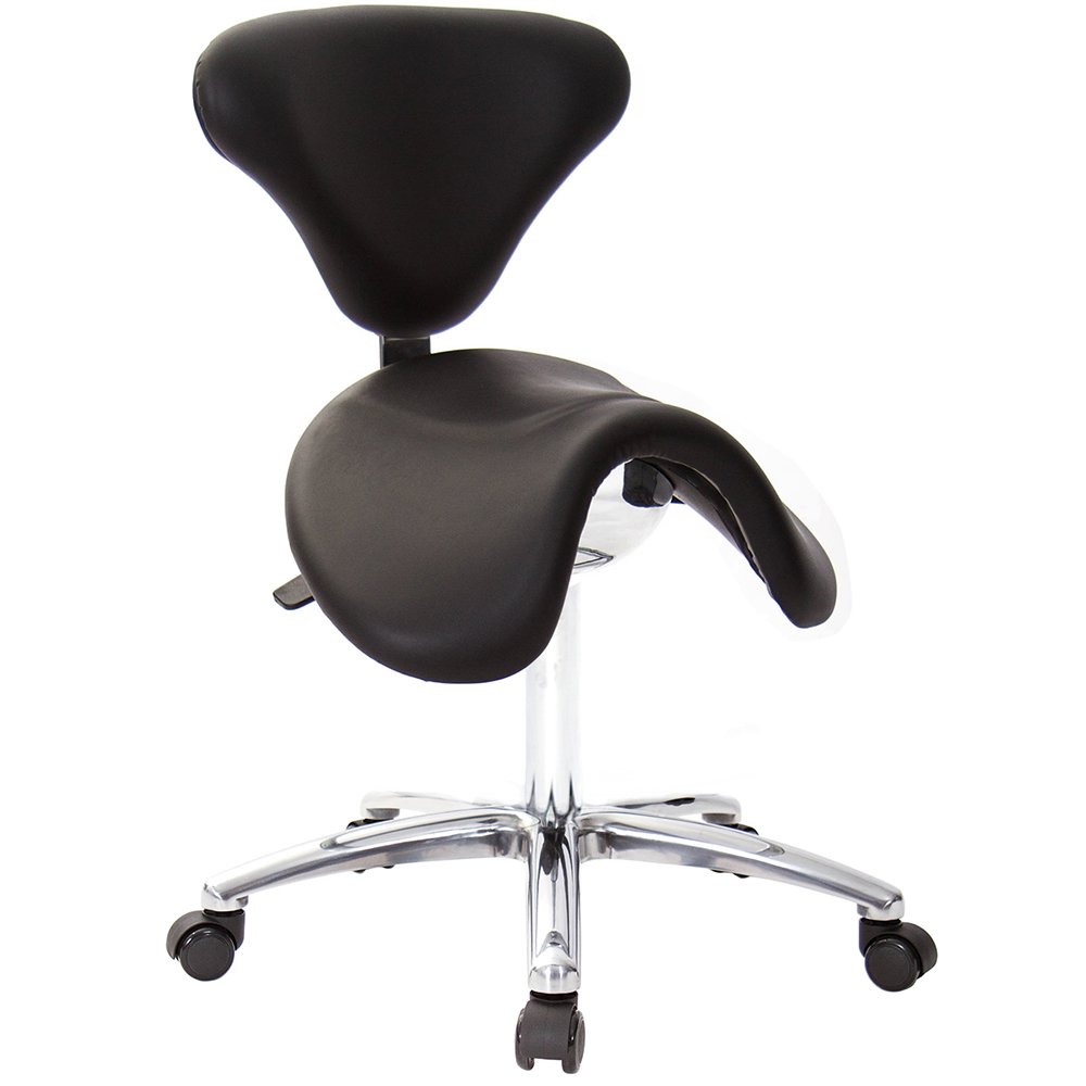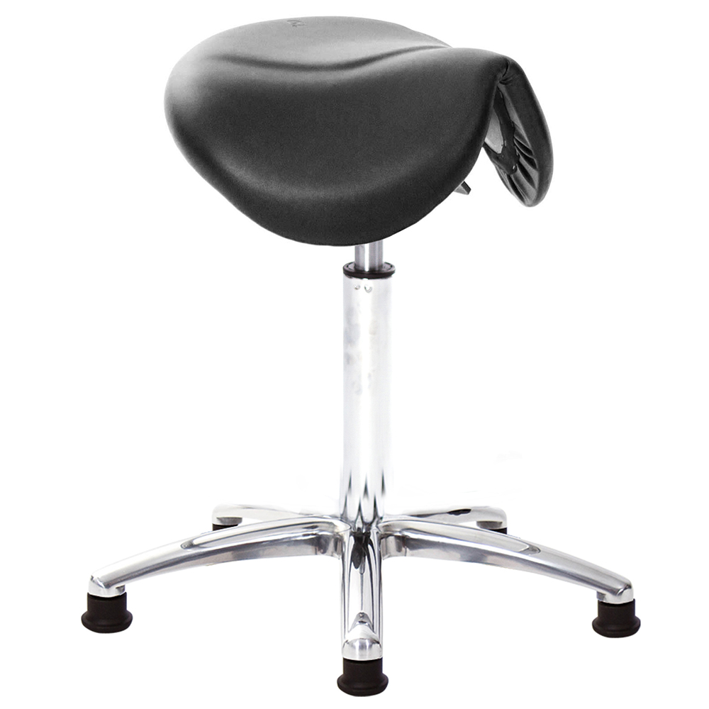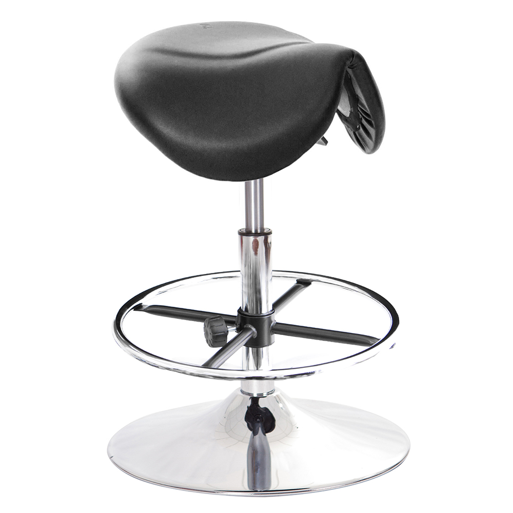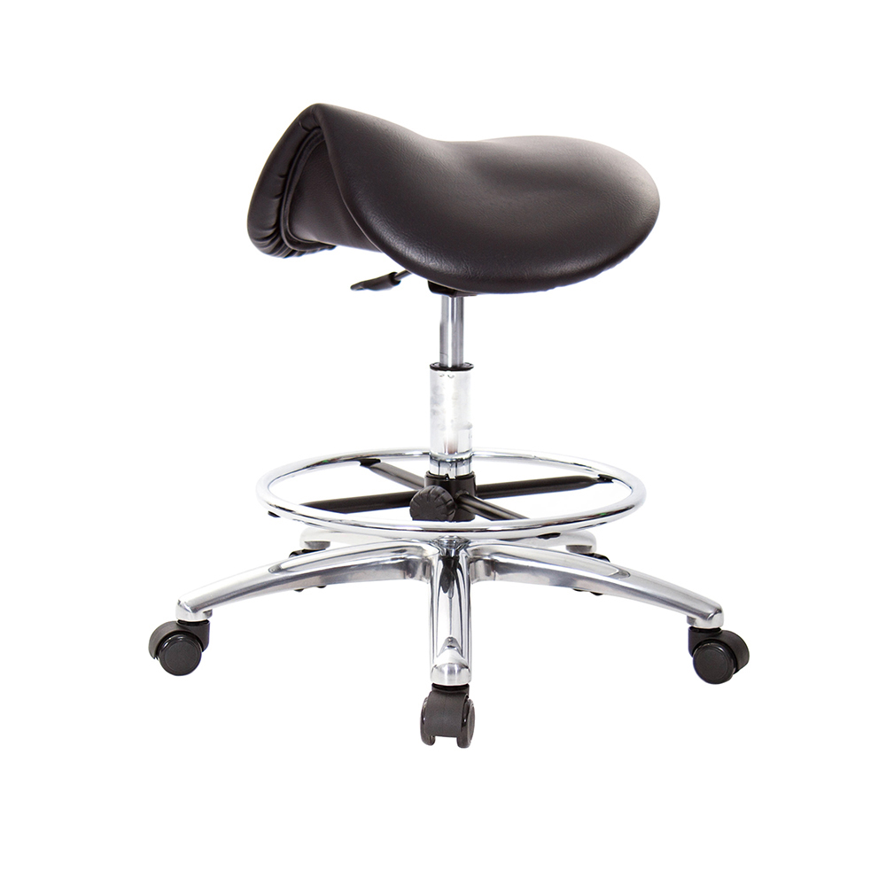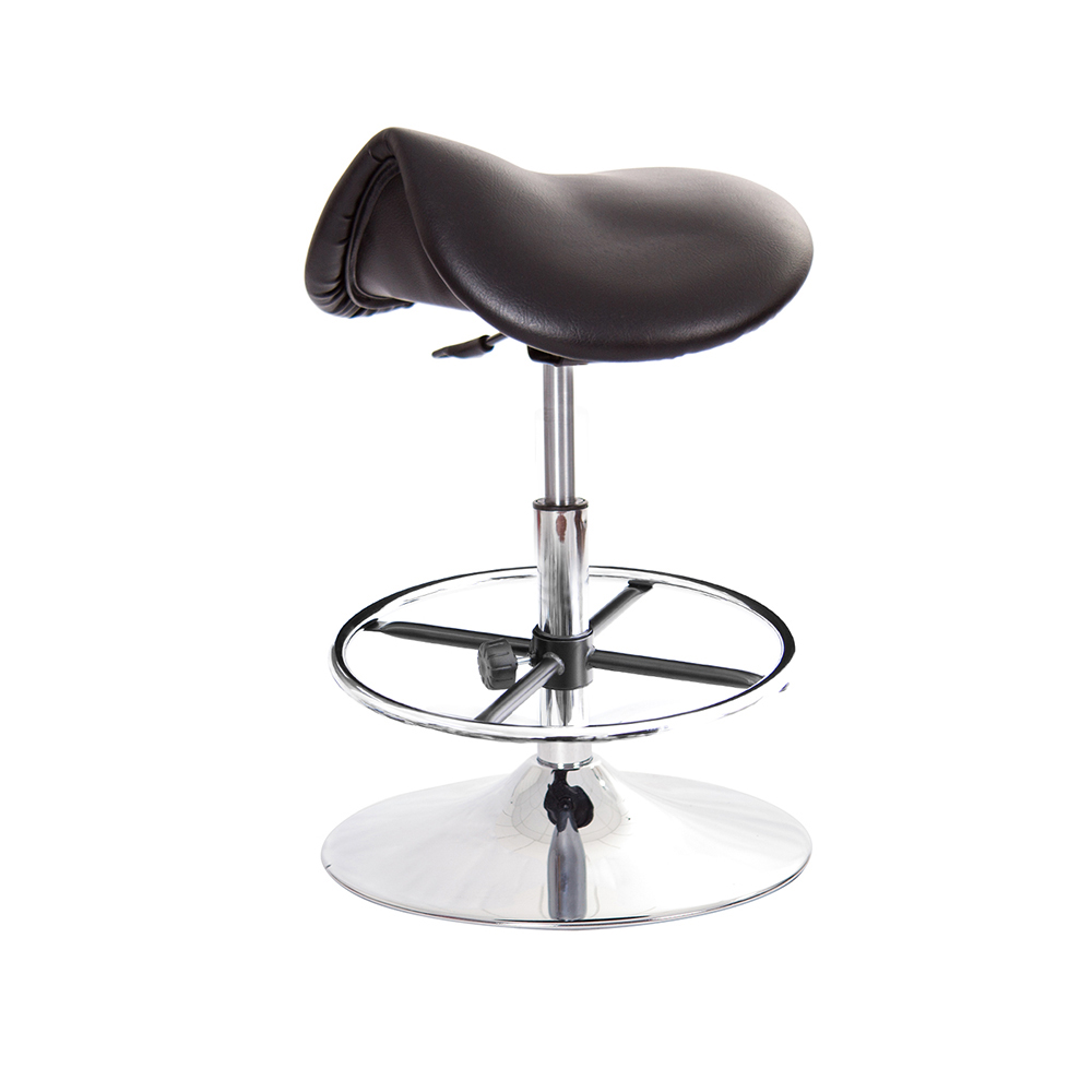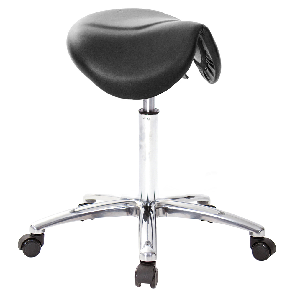仿馬鞍造型坐墊,能大大降低久座時,臀部造成壓力,當全身重量集中在人體臀部、尾椎,一般的平面工作椅無法將壓力釋放,會累積在臀部,透過馬鞍椅工作,雙腿較集中於人體中心下盤,將累積的重量,透過雙腿平均釋放,有效減輕脊椎與臀部壓力。