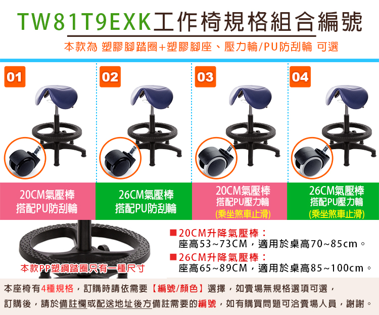 ※本款TW-81T9 馬鞍工作椅,提供多款式可選,可以依據需求購買