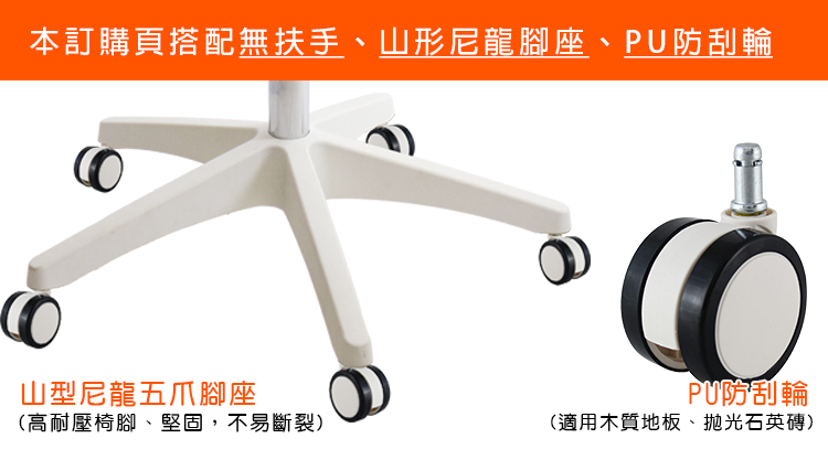 本訂購頁規格:無頭枕、無扶手、山型尼龍腳、PU防刮輪